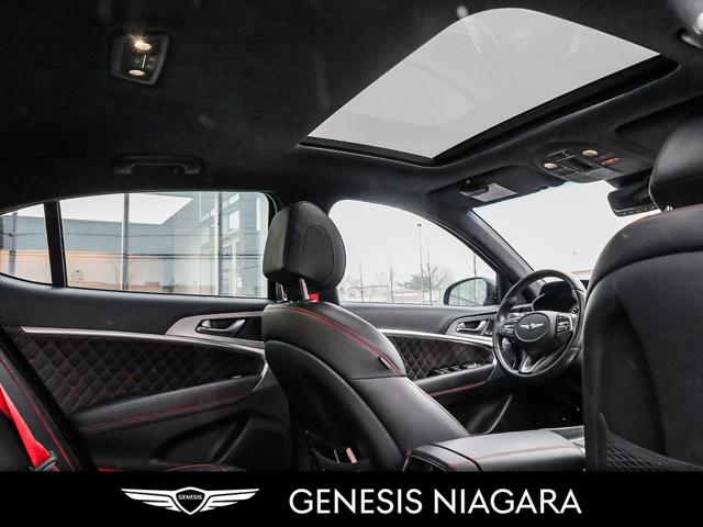 This 2022 G70 3.3T represents great value in a sports sedan with plenty of power and features that include. - Front and Rear parking assistance sensors - Rain-sensing wipers - Power-folding auto-dimming heated side mirrors with Genesis logo puddle lamps - Power tilt-and-telescopic steering column - Drivers Integrated Memory System + Power Driver and Passenger seat adjustment - Ventilated front seats heated rear seats - Wireless charging pad - 15-speaker Lexicon surround sound audio system - Dual exhaust system with oval outlets - 16-way Power Driver Seat including Power Side Bolster & Cushion Extension - Head-Up Display (HUD) - Power trunk lid - 3.3L twin-turbocharged V6 engine with 365hp and 376 lb. ft. of torque - Variable Gear Ratio (VGR) steering rack - Sport-tuned Electronically Control Suspension - Limited Slip Differential (LSD) - Brembo braking system - Nappa leather seating surfaces with sport quilting - Microfibre suede headliner - Sport 19'' aluminum alloy wheels with high-performance summer tires - Alloy pedals - Variable Exhaust Valve - Surround view monitor with Blind Spot View Monitor - Front passenger seat walk-in device - Acoustic Laminated Glass (Front) Q: Do you accept trade ins and is there a cost for an appraisal? Yes we accept trade ins of all makes and models. At Genesis Niagara your vehicle appraisal is completely complimentary. Our management team evaluates your vehicle using current market data condition history and demand to provide a competitive and transparent value. There is no obligation just clear information to help you make a confident decision. Q: I cannot come to the dealership right now but I need a trade value. What should I do? We understand that schedules can be busy. Simply contact our team by phone or email and provide your vehicle details including mileage and photos. We will provide a preliminary market estimate so you can move forward comfortably. When it is convenient for you we will confirm the value with a brief in person review. Q: My vehicle is not a Genesis. Can you still appraise it? Absolutely. We regularly appraise domestic import luxury SUV truck and sedan models of all brands. Our experience in the pre owned market allows us to confidently evaluate virtually any vehicle and provide a fair and competitive offer. Q: Why purchase from Genesis Niagara? Genesis Niagara is committed to delivering a refined transparent and customer focused buying experience for drivers across Ontario. Our 4.8 star Google rating reflects our dedication to exceptional service and professionalism at every step. We offer conveniences such as at home test drives and a straightforward pricing approach designed to make your purchase simple and comfortable. As part of Performance Auto Group one of Ontarios most established and trusted automotive groups you can purchase with added confidence knowing you are supported by a reputable organization with deep industry experience. We are proud supporters of charitable initiatives such as United Way and remain committed to giving back to the communities we serve. Our goal is simple. Provide honest guidance premium service and a purchasing experience that exceeds expectations. Experience the Genesis Difference at Genesis Niagara Refinement doesnt stop at performance; it extends to every aspect of your ownership journey. At Genesis Niagara every touchpoint is centred around you. From convenient at-home test drives and seamless online ordering to our transparent All-Inclusive One Price Promise every detail is designed to elevate your experience. Enjoy thoughtful ownership benefits like complimentary scheduled maintenance and valet service. Visit us today at 332 Ontario Street in St. Catharines right off the QEW. Performance Auto Group's mission is to make car buying easy. We are passionate about innovating so that your experience in any of our dealerships is quick and enjoyable. Youll enjoy working with our friendly teams who are always available to help you make an informed decision. Purchase confidently with our industry-leading transparency tools that provide unprecedented information about the history and condition of our cars. Drive with confidence knowing that we have the most rigorous inspection and reconditioning process in the country handled by our team of factory-trained technicians. We invite you to experience the difference - at Performance Auto Group.