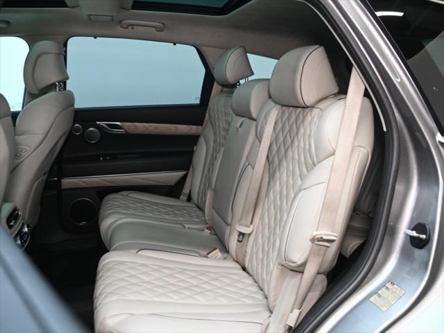2 SETS DE PNEUS Groupe motopropulseur Moteur : V6 3 5 L biturbo Puissance : 375 ch Couple : 391 lb-pi Transmission : Automatique à 8 rapports Rouage : Traction intégrale (AWD) Consommation (estimée) Ville : ~13 0 L/100 km Autoroute : ~10 0 L/100 km Dimensions Capacité : 7 passagers Espace cargo : Derrière la 3e rangée : 328 L Derrière la 2e rangée : 991 L Derrière la 1re rangée : 2 379 L Capacité de remorquage : 6 000 lb Équipements extérieurs Roues en alliage de 22 po Phares et feux arrière à DEL Hayon intelligent mains libres Toit ouvrant panoramique Rétroviseurs extérieurs auto-atténuants Intérieur & Confort Sièges en cuir Nappa haut de gamme Sièges avant chauffants et ventilés Sièges chauffants à la 2e rangée 3e rangée rabattable électriquement Climatisation automatique à trois zones Siège conducteur à 12 réglages avec fonction massage Volant chauffant gainé de cuir Technologie Écran tactile de 14 5 po Tableau de bord numérique 3D de 12 3 po Apple CarPlay et Android Auto Système audio Lexicon à 21 haut-parleurs Chargeur sans-fil pour téléphone Affichage tête haute (HUD) Caméra 360° (Surround View Monitor) Caméra d'angle mort Aide au stationnement intelligent à distance Sécurité Avertissement et freinage d'urgence avant Aide au maintien et suivi de voie Assistance à la conduite sur autoroute II Alerte et freinage en circulation transversale arrière Régulateur adaptatif avec fonction arrêt-démarrage Nombreux coussins gonflables incluant le coussin pour les genoux du conducteur
