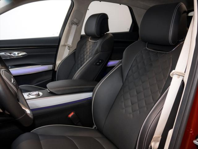 Groupe motopropulseur & Performance Deux moteurs électriques traction intégrale (AWD) Puissance : 429 ch (jusquà 483 ch en mode boost ») Couple : 516 lb-pi Accélération 0–100 km/h : ~4 5 secondes Batterie lithium-ion 77 4 kWh Autonomie : environ 383 km (selon RNCan) Recharge ultra-rapide (10 % à 80 % en ~18 minutes avec borne DC 350 kW) Dimensions Longueur : 4 715 mm Largeur : 1 910 mm Hauteur : 1 630 mm Empattement : 2 875 mm Intérieur & Confort Sièges en cuir Nappa matelassés Sièges avant chauffants et ventilés sièges arrière chauffants Tableau de bord numérique 3D de 12 3 po Écran central HD de 14 5 po avec navigation Système audio Lexicon à 14 haut-parleurs Toit panoramique Affichage tête haute (Head-up Display) Éclairage dambiance intérieur Technologie & Sécurité Services connectés Genesis Apple CarPlay™ et Android Auto™ Assistance au stationnement intelligent à distance Assistance à la conduite sur autoroute II Assistance anticollision frontale Assistance anticollision dans les angles morts Caméras panoramiques 3D (Surround View Monitor) Ensemble complet daides à la conduite (ADAS) Roues & Extérieur Roues en alliage de 20 po (design exclusif EV) Calandre Genesis avec port de recharge intégré Phares et feux arrière à DEL quad-lamp