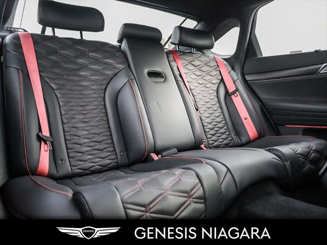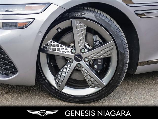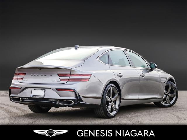 This 2025 G80 3.5T Sport Plus is fully loaded with every possible option. Its road presence is made recognizable by the 20'' aluminum alloy wheels with all-season tires that are equipped on this G80. This vehicle is the definition of luxury with features such as 3.5L twin-turbocharged V6 engine (375 hp 391 lb-ft torque) All-Wheel Drive (AWD) Microfibre suede headliner Sport-tuned Electronic Control Suspension with Road Preview 20'' aluminum alloy wheels Sport leather seating Nappa leather seating w/ quilting Ergo Seat with 16-way drivers power-adjustment and extension Leather-wrapped upper center console Surround View Monitor Aluminum pedals Lane Follow Assist and Lane Keep Assist Rear Wheel Steering Sport+ Drive Mode and Launch Control Parking Collision Avoidance-Assist Rear (PCA-R) Remote Smart Parking Assist (RSPA) Carbon fibre interior Power rear and manual rear side sunshades Blind-Spot View Monitor (BVM) We are confident your shopping experience with us will be a luxury experience with our ''no pressure'' sales team who are here to help you make the right choice. We are conveniently located at 332 Ontario Street in St.Catharines right off the QEW. We look forward to having you here and experiencing the Genesis difference. **Free Carproof online! Specialist onsite for all credit approvals!**