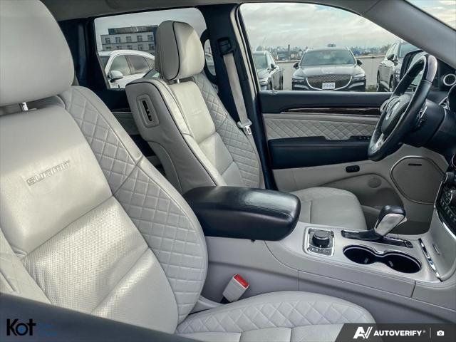 For sale is a 2021 Jeep Grand Cherokee Summit priced at $36 995 with 87 600 km. This top-of-the-line SUV is in excellent condition and offers a premium blend of luxury capability and refined comfort. The Grand Cherokee Summit features a high-end interior with premium leather seating heated and ventilated front seats heated rear seats a heated steering wheel and power-adjustable front seats with memory. The cabin is further enhanced by dual-zone automatic climate control a large touchscreen infotainment system with built-in navigation Apple CarPlay Android Auto Bluetooth connectivity premium audio and steering wheel-mounted controls. A surround-view camera system adds convenience when parking and maneuvering. Safety and driver-assist features include adaptive cruise control blind-spot monitoring rear cross-traffic alert lane departure warning forward collision warning with automatic emergency braking and parking sensors providing confidence in all driving situations. The Grand Cherokee delivers a smooth quiet ride while maintaining strong performance and capability for all seasons. With its upscale design spacious interior and Jeep's reputation for durability and versatility this 2021 Jeep Grand Cherokee Summit represents excellent value at $36 995. Contact me to arrange a viewing or test drive.