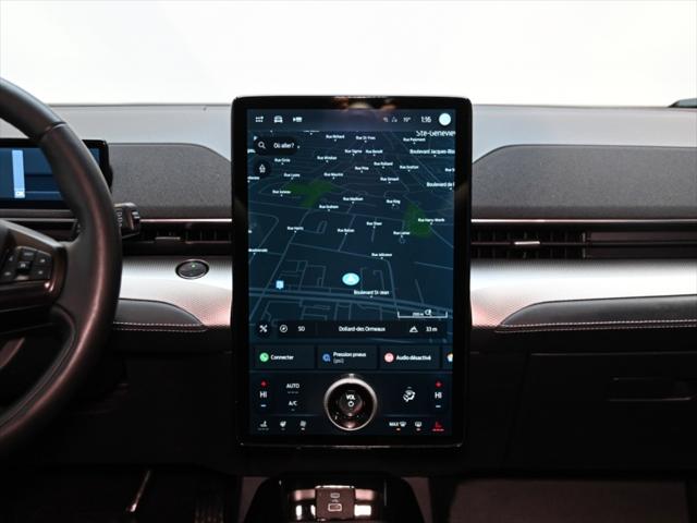 Groupe motopropulseur Deux moteurs électriques (rouage intégral électrique – eAWD) Transmission automatique à rapport unique Batterie autonomie standard (68 kWh utilisables) Performance Puissance : 346 ch Couple : 428 lb-pi Autonomie (estimation RNCan) Jusquà 340 km Recharge Niveau 2 (240 V) : environ 10 5 heures (0–100 %) Recharge rapide CC : jusquà 115 kW Environ 10–80 % en 45 minutes Rouage Rouage intégral électrique (eAWD) Équipement extérieur Jantes en alliage de 18 po couleur argent Phares et feux arrière à DEL Rétroviseurs extérieurs chauffants à réglage électrique Aileron arrière Accès intelligent avec démarrage à bouton-poussoir Équipement intérieur Habitacle Noir Onyx Sièges avant chauffants Siège conducteur à réglage électrique 8 directions Garnissage en similicuir Climatisation automatique bizone Éclairage dambiance Technologie et multimédia Écran tactile de 15 5 po avec SYNC 4A Apple CarPlay et Android Auto™ sans fil Tableau de bord numérique de 10 2 po FordPass™ Connect avec point daccès Wi-Fi Démarrage à distance et entrée sans clé Sécurité et aides à la conduite Ford Co-Pilot360™ Assistance précollision avec freinage durgence automatique Système de surveillance des angles morts (BLIS) avec alerte de trafic transversal Aide au maintien dans la voie Caméra de recul Régulateur de vitesse adaptatif (en option) Capacité 5 passagers