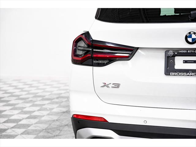 BMW X3 xDrive30i Sports Activity Vehicle 2024 Système de traction intégrale xDrive Moteur 4 cylindres turbo de 2 0 L Transmission automatique sport à 8 rapports Écran central tactile de 10 25 pouces Toit ouvrant panoramique Système de navigation intégré Apple CarPlay et Android Auto sans fil Caméra de recul avec capteurs de stationnement avant et arrière Volant sport gainé de cuir multifonctions Sièges avant chauffants à réglages électriques Jantes en alliage de 19 pouces Éclairage ambiant intérieur à DEL Hayon électrique Le raffinement et la polyvalence sont au cur de ce véhicule qui combine une conduite sportive et un confort exceptionnel pour les trajets du quotidien comme pour les escapades sur la route. Grâce à son moteur turbo performant et à sa traction intégrale intelligente chaque kilomètre devient une expérience dynamique et sécuritaire peu importe les conditions. Lintérieur propose une finition haut de gamme où la technologie et le confort se rejoignent harmonieusement. Le grand écran tactile la connectivité sans fil et les systèmes dassistance à la conduite créent un environnement intuitif et moderne pensé pour le conducteur et ses passagers. Son habitacle spacieux associé au hayon électrique assure une utilisation pratique et adaptée aux besoins de toute la famille. Que ce soit pour sa performance réactive son style raffiné ou ses technologies de pointe ce modèle se distingue comme un véhicule qui allie puissance et élégance. Venez découvrir par vous-même tout ce quil a à offrir en lessayant dès aujourdhui chez Brossard Hyundai. BMW X3 xDrive30i Sports Activity Vehicle 2024 xDrive all-wheel drive system 2.0L turbocharged 4-cylinder engine 8-speed sport automatic transmission 10.25-inch central touchscreen display Panoramic sunroof Integrated navigation system Wireless Apple CarPlay and Android Auto Rearview camera with front and rear parking sensors Leather-wrapped multifunction sport steering wheel Power-adjustable heated front seats 19-inch alloy wheels Interior LED ambient lighting Power tailgate Sophistication and versatility are the essence of this vehicle blending sporty performance with remarkable comfort for both daily commutes and long drives. With its turbocharged engine and intelligent all-wheel drive every journey feels dynamic and confident no matter the road conditions. Inside premium craftsmanship meets advanced technology. The large touchscreen wireless connectivity and driver assistance features create an intuitive modern environment designed for both driver and passengers. Its spacious cabin combined with a power tailgate ensures convenience and flexibility for every lifestyle. Balancing responsive performance refined design and cutting-edge technology this model stands out as a perfect harmony of power and elegance. Experience it for yourself with a test drive today at Brossard Hyundai. *Concessionnaire Hyundai de premier rang dans la région de Montréal *Fondé en 1997 et en croissance continue depuis. *Service à la clientèle de qualité offrant réparation et entretien. *Inventaire complet de véhicules neufs et usagés. *Valeur des véhicules d'échange attrayante. *Facilité de financement grâce au service des finances. *Service après-vente comprenant pièces et réparation. *Dessert une large région incluant Brossard La Prairie Montréal etc. *Personnel dévoué et techniciens chevronnés pour une expérience d'achat agréable et avantageuse. *Le présent site utilise un générateur d'équipements caractéristiques et spécifications techniques automatisée basée sur des listes fournies par différentes sources publiques pour ce type de véhicule. Ces informations sont à titre indicatif seulement et ne doivent sous aucun prétexte être considérées comme étant la fiche technique officielle du véhicule concerné dans cette annonce. Veuillez confirmer la liste des équipements options et inclusions avec le concessionnaire vendeur car celles-ci peuvent différer. *This site uses an automated generator of equipment characteristics and technical specifications based on lists provided by various public sources for this type of vehicle. This information is for guidance only and should not be relied upon as the official specification sheet for the vehicle featured in this advert. Please confirm the list of equipment options and inclusions with the selling dealer as these may differ.