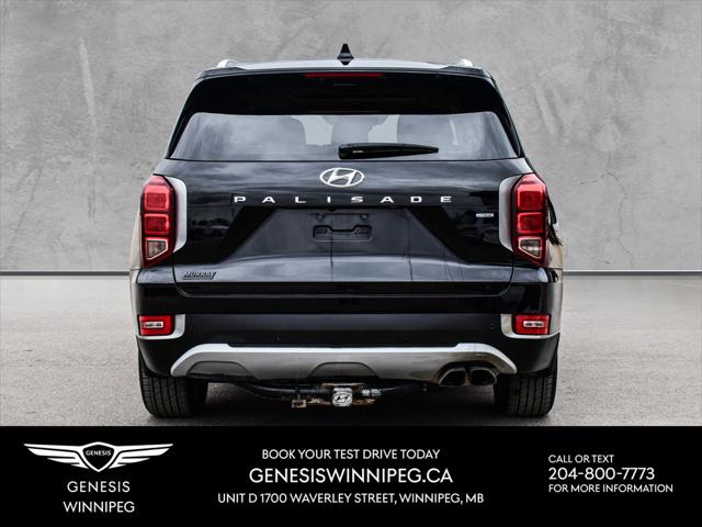 * MIDNIGHT BLACK LEATHER SEATING SURFACES * * BECKETTS BLACK * * Smart Device Integration * Experience the epitome of luxury and performance with this 2020 Hyundai Palisade Luxury 8-Passenger AWD available in Winnipeg. This SUV stands out with its sleek Beckett's Black exterior and the opulent comfort of Midnight Black leather seating surfaces. Enjoy seamless connectivity with Smart Device Integration keeping you in touch with everything that matters. The robust V6 engine provides impressive power making every drive a thrilling experience. Coupled with a smooth automatic transmission this Palisade ensures effortless handling whether you're navigating city streets or venturing off the beaten path. The spacious 8-passenger seating and advanced features like a 3rd-row seat and universal garage door opener make it perfect for family adventures or group outings. All Used Vehicles at Murray Hyundai include: - Multi-point Inspection - Free CARFAX Report - Top Trade-In Value - Competitive Financing Available Visit Murray Hyundai Winnipeg 1700 Waverley St. Call (204) 269-5555 DisplayTrim: MIDNIGHT BLACK LEATHER SEATING SURFACES