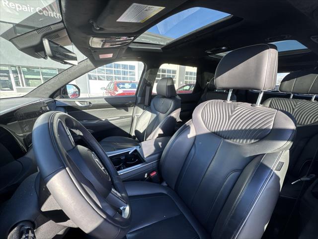 HYUNDAI EXECUTIVE DEMO QUALIFIES FOR HYUNDAI CPO PROGRAM STARTING AT 4.49% One Owner verified Clean Carfax Hyundai Executive Demo Safety Certified Ultimate Calligraphy Package Black Leather Interior AWD 3.8L V6 Engine ABS brakes Alloy wheels Apple CarPlay & Android Auto Auto High-Beam Headlights Blind-Spot Collision Warning Electronic Stability Control Front dual-zone A/C Head-Up Display Harman/Kardon Premium Audio Heated & Ventilated Front Seats Heated & Ventilated Rear Seats Heated steering wheel Illuminated entry Lane Keep Assist Navigation System Power liftgate Power moonroof Rain-sensing wipers Rear Cross-Traffic Collision-Avoidance Assist Remote engine start Smart Cruise Control Surround View Monitor Traction control.