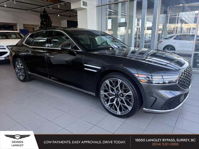WIth ultra-plush ride quality a hushed cabin and generous standard features this 2023 Genesis G90 is a huge step up in terms of luxury. This 2023 Genesis G90 is fresh on our lot in Langley.The G90 introduces a bold new direction for Genesis with a suite of advanced assistance features and a variety of new technologies that enhance every journey.This sedan has 38 550 kms. It's makalu gray in colour . It has a 8 speed automatic transmission and is powered by a 3.5L V6 Cylinder Engine.To apply right now for financing use this link : https://genesislangley.com/finance-center/Administration Fee $899 $99 Fuel Surcharge. Dealer ID #41797.