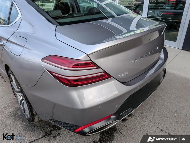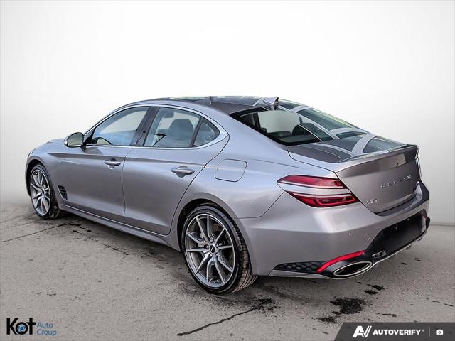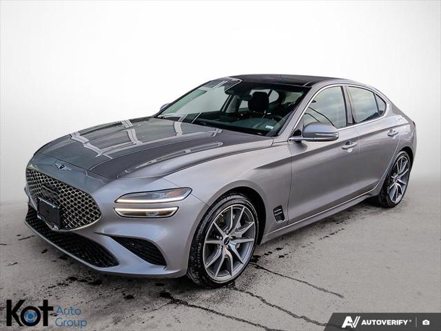 // EXCELLENT CONDITION! // Meet the 2025 Genesis G70 2.5T Advanced AWD a premium sport sedan that feels right at home in Kelowna. Finished in silver with a black interior this 4-door delivers a refined look with everyday ease. With 25 614 km it's a well-kept used option that still feels fresh. This 2025 Genesis G70 2.5T Advanced AWD pairs confident all-wheel-drive traction with an 8-speed automatic transmission for smooth quick shifts. Under the hood is a 2.5 L unleaded engine that balances strong response with calm cruising. Add in a sunroof and upscale lighting and you get a sedan that feels special every time you drive. FEATURES OF THE G70 2.5T Advanced AWD »» All-wheel drive for confident traction »» 2.5 L turbocharged performance feel »» 8-speed automatic with dual shift »» Premium sport sedan everyday friendly size ADVANCED SAFETY FEATURES »» Anti-lock braking system helps maintain control »» Stability control supports confident cornering grip »» Blind spot monitor for safer lane changes »» Lane departure warning adds extra awareness PERFORMANCE AND EFFICIENCY »» 2.5 L unleaded engine delivers strong response »» 8-speed automatic shifts smooth and quick »» Limited slip differential improves traction balance »» Performance tires enhance grip and feedback COMFORT AND CONVENIENCE »» Dual-zone automatic climate control keeps comfort balanced »» Heated front seats for cold mornings »» Memory seat settings for easy swaps »» Remote starter helps pre-condition cabin quickly TECHNONOLGY AND CONNECTIVITY »» Navigation system helps plan routes easily »» Bluetooth integration for calls and audio »» Steering wheel audio controls keep focus ahead »» Satellite radio and HD Radio included CARGO SPACE »» Rear trunk access improves loading convenience »» Remote trunk release opens with ease »» Spare tire onboard for added reassurance »» Sedan trunk fits daily bags easily WHAT OTHER OWNERS LIKE »» Confident all-wheel drive in bad weather »» Smooth power delivery and quick passing »» Clean cabin layout with easy controls »» Helpful driver assists for daily commuting At Genesis Kelowna this excellent-condition sedan is ready for drivers who want a premium feel without the premium new-car wait. Features like LED headlamps automatic headlights heated mirrors retractable mirrors and turn signal mirrors add daily confidence. You also get power windows power steering and push-button start for simple modern use. This 2025 Genesis G70 2.5T Advanced AWD's VIN is: KMTG34SC7SU159275.