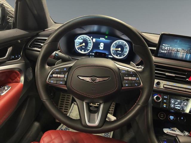 The 2026 Genesis G70 3.3T Sport in sophisticated Gray is an AWD sedan that elegantly balances performance with style. This sport-tuned driving machine is designed for those who appreciate precise handling and a robust drive. Boasting a dynamic exterior hue the Genesis G70 makes a strong statement before you even step inside. Its stylish alloy wheels and sleek silhouette hint at its capability. The interior is adorned in luxurious Maroon leather providing a plush and inviting atmosphere. The cabin is well-equipped with features that make every drive enjoyable including cooled front seats heated rear seats and a sunroof that fills the space with natural light. Cutting-edge technology is at your fingertips with the G70s comprehensive suite of options. The heads-up display navigation system and smart device integration keep you connected and informed. Safety is paramount with advanced features like lane assist brake assist and parking sensors that work together to enhance your peace of mind on the road. If you're someone who values both performance and elegance this Genesis G70 is tailored for you. For a deeper dive into this impressive vehicle and to explore all its features firsthand contact our dealership today. We look forward to assisting you in your car-buying journey.