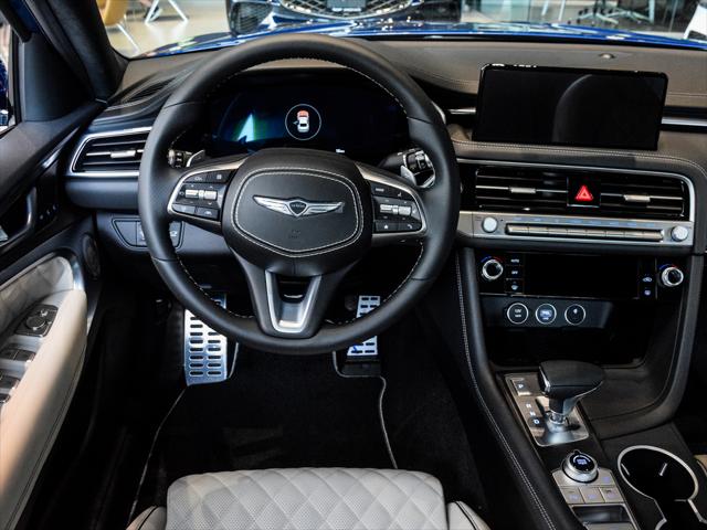 Stunning Kawah Blue exterior color w/ Fog Grey Nappa Leather Interior Sport Quilting available for immediate delivery. Never Driven Showroom Unit. The Twin-Turbo Charged V6 engine delivering 365 hp/376 lb-ft of torque will blow you & its competitors away . Most importantly it will give you that smile in your face every time you seat behind the steering wheel. In a nutshell this vehicle is just incredible! This is Exactly what you need to feel the luxury & sportiness of the interior cabin for your daily driving. This G70 sets out to make every drive more memorable with a new more aggressive front end sharpened silhouette and a progressive rear. Inside the focus is placed on connecting you and the car. A larger 10.25 HD display puts key information front and centre sport seats hold you firmly in place. Dual mode sport exhaust gives you more power and emits an intoxicating sound as you get the most out of this G70. Main Key Features on this beast include: 3.3L twin-turbocharged V6 engine with 365hp (+3HP w/ Variable Exhaust) and 376 lb. ft. of torque Head-Up Display (HUD) 12.3 high-resolution TFT LCD cluster Sport-tuned Electronically Controlled Suspension Limited Slip Differential (LSD) Nappa leather seating surfaces with sport quilting Microfibre suede headliner Sport 19'' aluminum alloy wheels with high-performance summer tires Alloy pedals Variable Exhaust Valve 16-way power-adjustable driver's seat including thigh extension and side bolsters Surround view monitor with Blind Spot View Monitor Front passenger seat walk-in device Acoustic Laminated Glass (Front) & Much More than the competition. EXPERIENCE the GENESIS OWNERSHIP EXPERIENCE will INCLUDE all the benefits below. 5yr / 100 k Complimentary Scheduled Maintenance + Concierge Service within 50 km from your home or office 5yr / 100 k Genesis Courtesy vehicle will be provided for all your regular maintenance & warranty work 5yr / 100 k Comprehensive Limited Warranty 5yr / 100 k POWERTRAIN Protection 5yr / Unlimited km 24/7 Road Premium Road Side Assistance 5yr / 100 k Complimentary Navigation Map Updates In Addition this Vehicle was: - Fully Inspected & Approved by our Certified Genesis Technicians - Extensive mechanical & appearance reconditioning process - Full Tank of Gas to be provided prior to delivery COMPETETIVE FINANCE RATES AVAILABLE WE PAY TOP DOLLAR FOR TRADE-INS Contact us now to book a test-drive. One of our friendly and knowledgeable representatives will be happy to help! From out of town? Book a Live Video Call Appointment and we will show you the vehicle from all angles while answering your questions in real time. *Come to see How Genesis Maple is changing the Way GTA buys Cars* *Contact us by your chosen method or better yet let us arrange a concierge test drive from your home or office* Genesis Maple - Part of the ZANCHIN Automotive Group *Conveniently located in the Maple Auto Mall in a trendy neighborhood East of HWY 400 North of Vaughan Mills Mall & South of Canada's Wonderland at 233 Sweet River Blvd. Maple ON L6A 4G9*