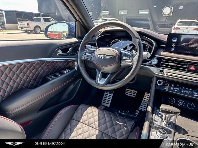 Our G70's trim level is 3.3T Sport. The interior radiates athletic luxury with deeply contoured Nappa leather sport seats featuring quilting and ventilation a sunroof a heated leather steering wheel and a suede headliner that heightens the sense of refinement. A 10.25-inch navigation touchscreen with split-screen capability anchors the cabin seamlessly integrating Apple CarPlay Android Auto and Genesis Connected Services while the 15-speaker Lexicon Quantum Logic Surround system fills the space with concert-level sound. Premium touches such as a power tilt-and-telescoping steering column memory settings for the driver and Smart Cruise Control with Stop & Go enhance daily driving comfort. Safety and confidence are built in with a suite of advanced technologies including Blind-Spot Collision-Avoidance Forward Collision-Avoidance with Pedestrian Detection an Aerial View Camera System and Highway Driving Assist for effortless control. This vehicle has been upgraded with the following features: Premium Audio Hud Sunroof 360 Camera Power Trunk Navigation Cooled Seats.