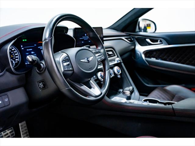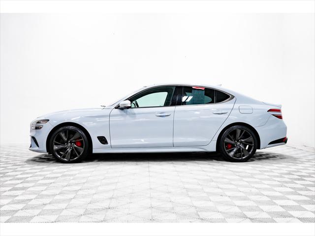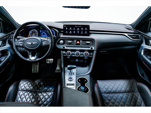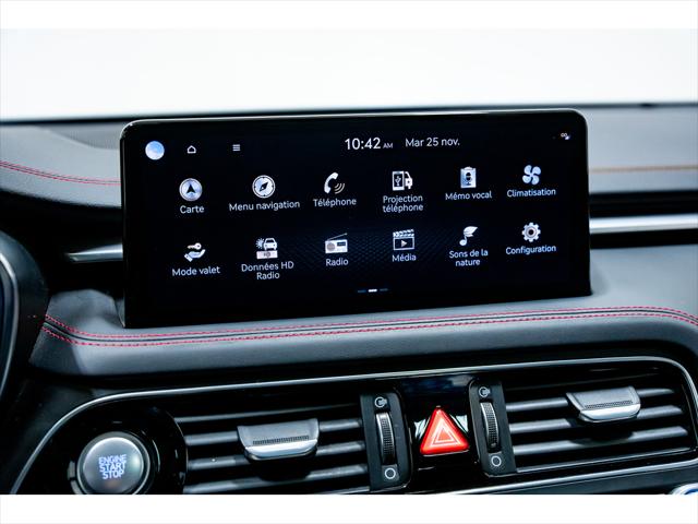 Genesis G70 3.3T Sport 2022 Moteur V6 biturbo 3.3L Transmission intégrale (AWD) Sellerie en cuir véritable Toit ouvrant Sièges avant chauffants et ventilés Écran tactile haute résolution Système audio premium Régulateur de vitesse adaptatif Alerte de circulation transversale arrière Surveillance des angles morts Caméra de recul et capteurs de stationnement Freinage durgence automatique Ce modèle incarne une performance remarquable grâce à une accélération puissante et une tenue de route dune précision impressionnante. Chaque trajet devient une expérience raffinée soutenue par un confort exceptionnel et une sophistication qui dépasse les standards de sa catégorie. Son intérieur luxueux enveloppe conducteur et passagers dans un environnement haut de gamme où chaque détail a été pensé pour rehausser le plaisir de conduite. Le comportement dynamique repose sur un excellent équilibre entre sportivité et douceur permettant de tirer pleinement parti de ses capacités tout en maintenant une conduite agréable et maîtrisée. La qualité de fabrication solide et élégante se distingue tant à lextérieur quà lintérieur offrant une finition premium rarement égalée. Les technologies embarquées assurent une conduite sereine et intuitive avec des aides à la conduite complètes un système multimédia réactif et une connectivité fluide. Conçue pour ceux qui recherchent lharmonie entre puissance sophistication et sécurité cette berline sport se démarque autant pour les trajets quotidiens que pour les escapades sur route. Venez lessayer chez Brossard Hyundai et noubliez pas de vérifier lexactitude des équipements auprès de votre représentant. Genesis G70 3.3T Sport 2022 This model stands out first and foremost for its exhilarating power delivery and exceptional road handling. The driving experience is defined by sharp responsiveness confidence-inspiring stability and a refinement level that elevates every moment behind the wheel. A luxurious interior crafted with premium materials and meticulous attention to detail surrounds occupants with comfort and sophistication. Performance is at the core of its character. The twin-turbocharged engine provides rapid acceleration while the precisely tuned chassis delivers a perfect balance between spirited driving and smooth cruising. Whether navigating daily commutes or enjoying more dynamic weekend outings it offers a driving feel that is both engaging and remarkably composed. Inside the cabin features an elegant layout enhanced by supportive seats a high-resolution infotainment display and advanced connectivity options. From the stitching of the upholstery to the tactile quality of the controls everything contributes to a quiet premium atmosphere designed for discerning drivers. Safety and technology also play a central role. The suite of driver assistance features helps maintain peace of mind in a variety of driving situations offering tools that support awareness comfort and protection. Intelligent systems monitor blind spots assist in traffic and contribute to secure manoeuvres in tight areas. Combined with modern multimedia capabilities these elements create a seamless blend of convenience and innovation. The exterior design complements its performance-oriented personality with sharp lines bold accents and a commanding stance that captures attention. Every angle reinforces the blend of sportiness and elegance that defines its identity. For drivers seeking a dynamic yet refined vehicle that excels in performance luxury and technology this model represents a standout option. Come experience it for yourself at Brossard Hyundai and always confirm equipment accuracy with your representative. *Concessionnaire Hyundai de premier rang dans la région de Montréal *Fondé en 1997 et en croissance continue depuis. *Service à la clientèle de qualité offrant réparation et entretien. *Inventaire complet de véhicules neufs et usagés. *Valeur des véhicules d'échange attrayante. *Facilité de financement grâce au service des finances. *Service après-vente comprenant pièces et réparation. *Dessert une large région incluant Brossard La Prairie Montréal etc. *Personnel dévoué et techniciens chevronnés pour une expérience d'achat agréable et avantageuse. *Le présent site utilise un générateur d'équipements caractéristiques et spécifications techniques automatisée basée sur des listes fournies par différentes sources publiques pour ce type de véhicule. Ces informations sont à titre indicatif seulement et ne doivent sous aucun prétexte être considérées comme étant la fiche technique officielle du véhicule concerné dans cette annonce. Veuillez confirmer la liste des équipements options et inclusions avec le concessionnaire vendeur car celles-ci peuvent différer. *This site uses an automated generator of equipment characteristics and technical specifications based on lists provided by various public sources for this type of vehicle. This information is for guidance only and should not be relied upon as the official specification sheet for the vehicle featured in this advert. Please confirm the list of equipment options and inclusions with the selling dealer as these may differ.