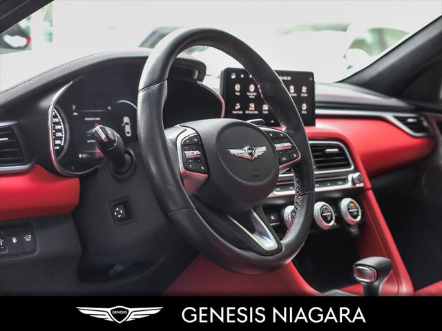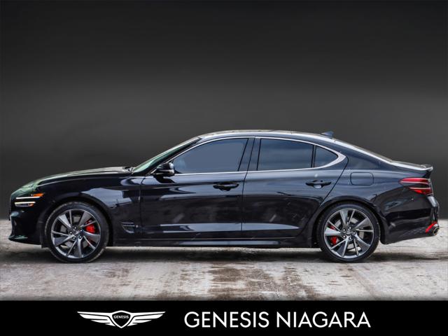 This 2023 G70 3.3T Sport is a high-performance standout featuring a powerful twin-turbo engine and exclusive sport-tuned components. 3.3L Twin-Turbo V6 engine (365 HP / 376 lb-ft torque) Sport-tuned Electronically Controlled Suspension Limited Slip Differential (LSD) & Brembo Braking System Variable Exhaust Valve with Dual Oval Outlets 19-inch Sport Aluminum Alloy Wheels with Summer Tires Nappa Leather Seating with Sport Quilting Head-Up Display (HUD) Surround View Monitor & Blind-Spot View Monitor 15-speaker Lexicon Surround Sound Audio System Microfibre Suede Headliner Q: Do you accept trade ins and is there a cost for an appraisal? Yes we accept trade ins of all makes and models. At Genesis Niagara your vehicle appraisal is completely complimentary. Our management team evaluates your vehicle using current market data condition history and demand to provide a competitive and transparent value. There is no obligation just clear information to help you make a confident decision. Q: I cannot come to the dealership right now but I need a trade value. What should I do? We understand that schedules can be busy. Simply contact our team by phone or email and provide your vehicle details including mileage and photos. We will provide a preliminary market estimate so you can move forward comfortably. When it is convenient for you we will confirm the value with a brief in person review. Q: My vehicle is not a Genesis. Can you still appraise it? Absolutely. We regularly appraise domestic import luxury SUV truck and sedan models of all brands. Our experience in the pre owned market allows us to confidently evaluate virtually any vehicle and provide a fair and competitive offer. Q: Why purchase from Genesis Niagara? Genesis Niagara is committed to delivering a refined transparent and customer focused buying experience for drivers across Ontario. Our 4.8 star Google rating reflects our dedication to exceptional service and professionalism at every step. We offer conveniences such as at home test drives and a straightforward pricing approach designed to make your purchase simple and comfortable. As part of Performance Auto Group one of Ontarios most established and trusted automotive groups you can purchase with added confidence knowing you are supported by a reputable organization with deep industry experience. We are proud supporters of charitable initiatives such as United Way and remain committed to giving back to the communities we serve. Our goal is simple. Provide honest guidance premium service and a purchasing experience that exceeds expectations. Experience the Genesis Difference at Genesis Niagara Refinement doesnt stop at performance; it extends to every aspect of your ownership journey. At Genesis Niagara every touchpoint is centred around you. From convenient at-home test drives and seamless online ordering to our transparent All-Inclusive One Price Promise every detail is designed to elevate your experience. Enjoy thoughtful ownership benefits like complimentary scheduled maintenance and valet service. Visit us today at 332 Ontario Street in St. Catharines right off the QEW. Performance Auto Group's mission is to make car buying easy. We are passionate about innovating so that your experience in any of our dealerships is quick and enjoyable. Youll enjoy working with our friendly teams who are always available to help you make an informed decision. Purchase confidently with our industry-leading transparency tools that provide unprecedented information about the history and condition of our cars. Drive with confidence knowing that we have the most rigorous inspection and reconditioning process in the country handled by our team of factory-trained technicians. We invite you to experience the difference - at Performance Auto Group.