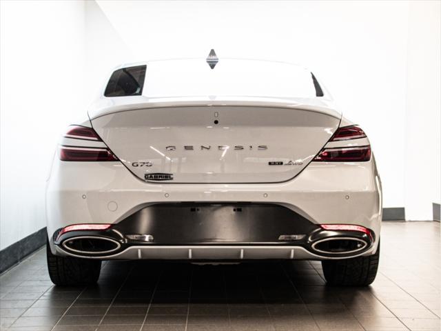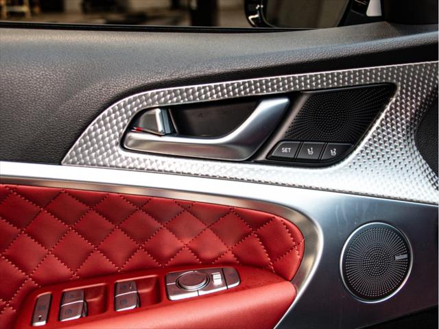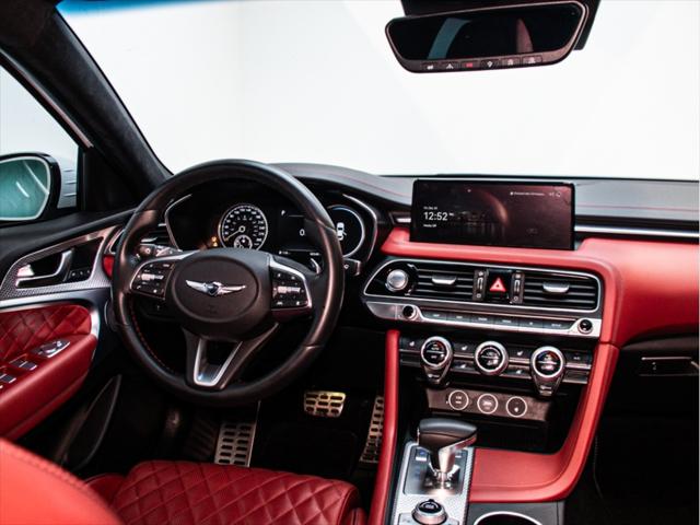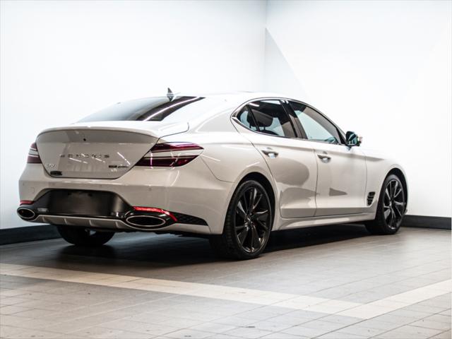 Moteur et Performance Moteur V6 biturbo de 3 3 L à essence Puissance : 365 chevaux à 6 000 tr/min Couple : 376 lb-pi à 1 300–4 500 tr/min Transmission automatique à 8 rapports avec palettes au volant Traction intégrale (AWD) Suspension à commande électronique Freins haute performance Brembo Sélecteur de modes de conduite (Éco Confort Sport Sport+) Contrôle de départ (Launch Control) Consommation (estimée) Ville : 13 3 L/100 km Route : 9 7 L/100 km Combinée : 11 7 L/100 km Type de carburant : Super (essence premium) Éléments extérieurs Roues en alliage de 19 po (design sport) Phares et feux arrière quadruples à DEL Calandre sport avec fini chrome foncé Toit ouvrant électrique Coffre intelligent mains libres Rétroviseurs extérieurs chauffants et repliables électriquement Intérieur et confort Sellerie en cuir Nappa Siège du conducteur à 16 réglages électriques Siège du passager à 12 réglages électriques Sièges avant chauffants et ventilés Sièges arrière chauffants Volant chauffant Garnitures intérieures en aluminium Climatisation automatique à deux zones Éclairage dambiance intérieur Infodivertissement et connectivité Écran tactile de 10 25 po Navigation avec circulation en temps réel Apple CarPlayMC et Android AutoMC Système audio haut de gamme Lexicon à 15 haut-parleurs Chargeur sans fil pour téléphone intelligent Tableau de bord numérique 3D de 12 3 po Sécurité et aide à la conduite Assistance à la conduite sur autoroute Assistance à lévitement de collision dans les angles morts Assistance à la prévention de collision frontale (piéton cycliste intersection) Assistance à lévitement de collision transversale arrière Caméra à vue panoramique (360°) Régulateur de vitesse intelligent avec arrêt/démarrage Assistance au maintien et au suivi de voie Avertisseur de distance de stationnement (avant et arrière) Dimensions Longueur : 4 685 mm Largeur : 1 850 mm Hauteur : 1 400 mm Empattement : 2 835 mm Volume du coffre : 297 L
