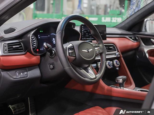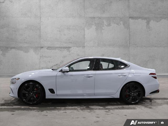 Discover the perfect blend of power and sophistication with the 2023 Genesis G70 3.3T Sport. This used luxury sedan is designed for those who crave an exhilarating drive without compromising on style or comfort. Under the hood the robust 3.3L V6 engine paired with an 8-speed automatic transmission ensures a smooth yet spirited performance while the all-wheel drive system provides superior traction and control even in challenging Canadian weather conditions.