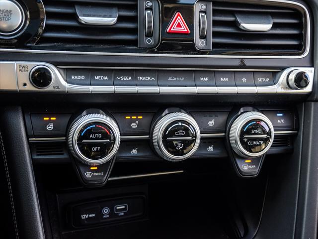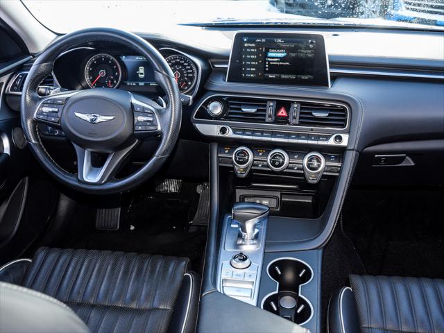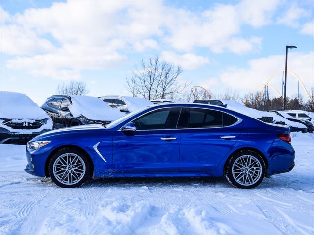 1Owner/No Accident Records/Fully Genesis Serviced since New. For a vehicle that doesnt pull punches in the corners the G70 sure knows how to treat you with kid gloves. When you nestle into the quilted leather seat and grab the wheel you feel instantly at home. Elegant contrast stitching and brushed aluminum accents highlight the cabins fluid design lines. The way the centre console wraps around you makes climate and audio adjustments effortless. And the high-mounted touch-screen ensures that with a flick of the eye and a touch of a finger you can optimize the cabin to your needs. Which comes in handy since you have quite the drive to enjoy after all. Below are the Key Features on this G70 2.0T Elite: 2.0L T-GDI I4 (252 hp 260 lb-ft) with idle stop-and-go All-Wheel Drive 8-speed automatic transmission with paddle shifters and downshift rev-matching Drive Mode Select with Custom setting Electronic Parking Brake (EPB) with vehicle Auto Hold Hill Assist Control (HAC) ABS/VSM/ESC/TCS Blind-Spot Collision Warning (BCW) with Rear Cross-Traffic Collision Warning (RCCW) and Lane Change Assist (LCA) Forward Collision-Avoidance Assist (FCA) Lane Keep Assist (LKA) with Lane Departure Warning (LDW) Adaptive Cruise Control (ACC) with stop-and-go capability Driver Attention Warning (DAW) High Beam Assist (HBA) +LED headlights +Genuine leather seating with vertical quilting +Rear Parking Assist Sensors (RPAS) +Rain-sensing wipers +Electrochromic outside rearview mirrors +Power folding mirrors with Genesis logo puddle lamps +Power tilt and telescopic steering column +Drivers Integrated Memory System +Ventilated front seats heated rear seats +12-way power-adjustable passenger seat with power lumbar +8.0 AVN 4.0 navigation system +15-speaker Lexicon surround-sound audio system +Genuine aluminum trim (dash doors IP TGS) LED DRL LED tail lamps LED side mirror turn signal repeaters Bright finish 18 aluminum wheels with P225/45R18 Michelin MXM4 A/S tires Temporary spare tire Tire Pressure Monitoring System (TPMS) Steering with R-MDPS 7airbags including drivers knee Power windows with auto/up down (all 4 windows) Heated exterior side mirrors Electrochromic rearview mirror with HomeLinktransceiver Wide-type power sunroof Dual-zone automatic climate control Proximity keyless entry with push-button ignition Manual tilt and telescopic steering column adjustment Heated perforated-leather steering wheel Sliding front sun visors with mirror and light Metal-painted inside door handles Deluxe alloy door scuff plates 12-way power-adjustable drivers seat with power lumbar 8.0 touch-screen Display Audio with AA & CP Genesis Connected Services TMU (Blue Link) 3 USB ports (1 front charge+data/ 1 front charge-only / 1 rear charge-only) iPhone/auxiliary connectivity Bluetooth hands-free phone system Steering wheel-mounted audio and telephone controls Rearview camera with dynamic guidelines Electroluminescent instrument cluster with 7.0 TFT LCD multi-function display 60/40 split-fold rear seats Rear seat armrest with integrated cup holders Rear console air vents Smart Trunk (spring type) Low washer fluid warning light LED interior lighting & Much More... In Addition this Vehicle was: - Fully Inspected & Approved by our Certified Genesis Technicians - Extensive mechanical & appearance reconditioning process - Full Tank of Gas to be provided prior to delivery - 3-MONTH SIRIUSxm satellite radio subscription COMPETETIVE FINANCE RATES AVAILABLE WE PAY TOP DOLLAR FOR TRADE-INS Contact us now to book a test-drive. One of our friendly and knowledgeable representatives will be happy to help! From out of town? Book a Live Video Call Appointment and we will show you the vehicle from all angles while answering your questions in real time. *Come to see How Genesis Maple is changing the Way GTA buys Cars* *Contact us by your chosen method or better yet let us arrange a concierge test drive from your home or office* Genesis Maple - Part of the ZANCHIN Automotive Group *Conveniently located in the Maple Auto Mall in a trendy neighborhood East of HWY 400 North of Vaughan Mills Mall & South of Canadas Wonderland at 233 Sweet River Blvd. Maple ON L6A 4G9*