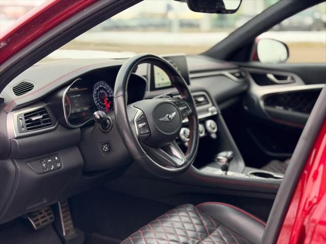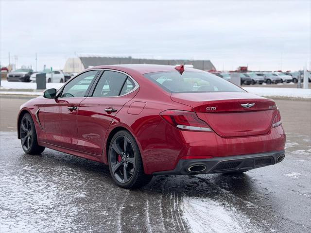 Introducing this 2021 Genesis G70. Expressing power that is forceful yet never feels forced. Engineered to excel not just on paper but on pavement. Equipped to entertain and inform. Protect and connect. Designed in every aspect to celebrate the pure unbridled fun of sporty driving. This low mileage sedan has just 43 335 kms. It's havana red in colour . It has a 8 speed automatic transmission and is powered by a smooth engine. It may have some remaining factory warranty please check with dealer for details.
