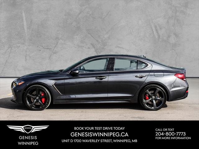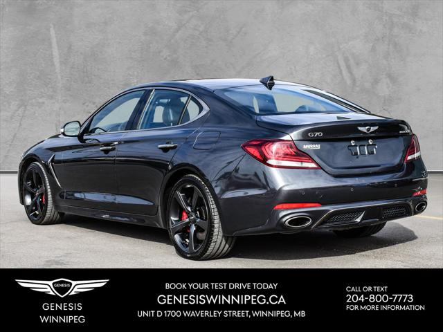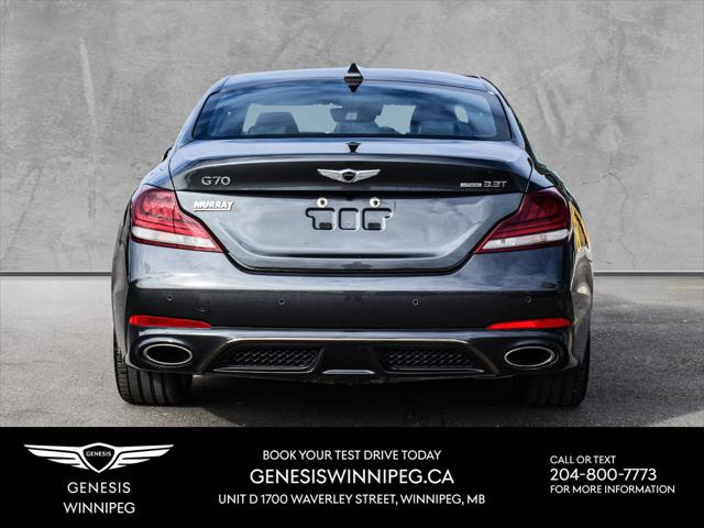 * Turbocharged * * Aluminum Wheels * * Heated Front Seat(s) * Discover driving elegance in the Genesis G70 3.3T Sport AWD a remarkable sedan that combines luxury with performance. Its robust V6 Cylinder Engine paired with an automatic transmission offers a seamless and exhilarating driving experience. Navigate through the city smoothly with its turbocharged powertrain providing you with the perfect blend of power and efficiency. The G70's striking exterior is accentuated by sleek aluminum wheels that complement its sophisticated design. Inside comfort is paramount with features like heated front seats ensuring a cozy ride even in chilly conditions. The sedan's smart device integration and Bluetooth connection keep you connected and entertained on every journey. All Used Vehicles at Murray Hyundai include: - Multi-point Inspection - Free CARFAX Report - Top Trade-In Value - Competitive Financing Available Visit Murray Hyundai Winnipeg 1700 Waverley St. Call (204) 269-5555 DisplayTrim: Turbocharged