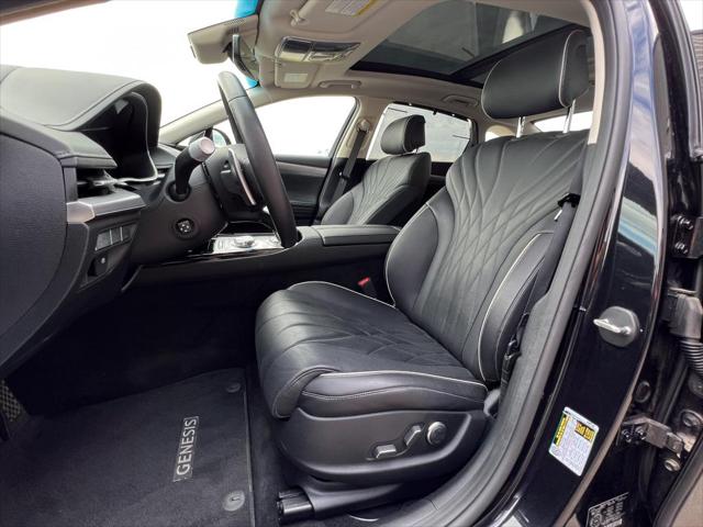 Our G80's trim level is 2.5T Advanced. This modern and sophisticated Genesis G80 2.5T Advanced comes loaded with heated and cooled leather seats a large power sunroof heads up display and a huge 14.5 inch HD touchscreen that's paired with built-in navigation a Lexicon premium audio system Apple CarPlay and Android Auto. Additional premium features include stylish aluminum wheels proximity keyless entry a power trunk lid distance pacing cruise control front and rear parking sensors blind spot monitoring with collision avoidance assist lane keep assist and a 360 degree aerial view camera. This vehicle has been upgraded with the following features: Sunroof Cooled Seats Leather Seats Apple Carplay Android Auto Premium Audio Hud.