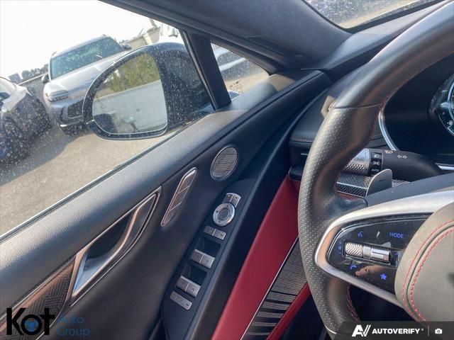 Discover refined luxury and confidence in this 2024 Genesis G80. Locally driven with just 19 000 km this executive sedan has been professionally maintained certified inspected and meticulously cared for. To add even greater value it includes complimentary maintenance up to 100 000 km ensuring peace of mind and worry-free ownership. This G80 has also never been smoked in preserving a clean and fresh interior.Step inside and enjoy premium comfort and cutting-edge technology including:Leather seating with heated and ventilated front seats for year-round comfortAdvanced safety features such as Blind-Spot Collision Avoidance Lane Keeping Assist and Smart Cruise ControlSurround View Monitor and Parking Sensors for effortless maneuvering12.3 infotainment display with navigation Apple CarPlay & Android AutoPremium audio system delivering rich sound qualityPanoramic sunroof to brighten every driveOn the road the Genesis G80 blends smooth performance with confident handling creating a driving experience that is both dynamic and refined.This rare combination of low mileage complimentary long-term maintenance and luxury features makes this G80 an outstanding choice for discerning drivers available now at Genesis Victoria.