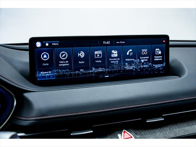 GENESIS G80 3.5T SPORT PLUS 2023 Moteur V6 biturbo 3 5 L Transmission automatique à 8 rapports Rouage intégral AWD Suspension adaptative avec lecture de la route Différentiel arrière à glissement limité Jantes en alliage de 20 pouces Freins haute performance Direction assistée électrique sportive Sièges en cuir Nappa Sièges avant chauffants et ventilés Sièges arrière chauffants Volant chauffant Réglages électriques avec mémoires Système multimédia avec écran large Navigation intégrée Apple CarPlay et Android Auto Système audio haut de gamme Lexicon Affichage tête haute Tableau de bord numérique Caméras à 360 degrés Aides à la conduite avancées (freinage durgence maintien de voie régulateur adaptatif) La grande force de ce modèle réside dans léquilibre exceptionnel entre performance sportive confort haut de gamme et technologies de pointe. Dès les premiers instants au volant la sensation de raffinement est omniprésente soutenue par une mécanique puissante et une tenue de route remarquablement maîtrisée. Sous le capot le moteur V6 biturbo de 3 5 litres offre des accélérations franches et linéaires tout en conservant une souplesse idéale pour une conduite quotidienne. La transmission automatique à 8 rapports travaille en parfaite harmonie avec le rouage intégral afin dassurer une motricité constante et une stabilité accrue peu importe les conditions routières. La suspension adaptative capable danticiper létat de la chaussée rehausse considérablement le confort tout en conservant un comportement dynamique. Lhabitacle se distingue par son ambiance luxueuse et sportive. Les sièges en cuir Nappa chauffants et ventilés procurent un maintien remarquable tandis que les matériaux nobles et les finitions soignées témoignent du souci du détail propre à Genesis. Lespace généreux à lavant comme à larrière assure un confort optimal pour tous les occupants. Côté technologie lexpérience est complète et intuitive. Le grand écran multimédia la navigation intégrée et laffichage tête haute facilitent la conduite tandis que le système audio Lexicon transforme chaque trajet en une expérience immersive. Les multiples aides à la conduite contribuent à une tranquillité desprit accrue autant en ville que sur autoroute. En somme cette berline sadresse à une clientèle exigeante à la recherche dun véhicule alliant prestige performances et innovation. Venez lessayer dès aujourdhui chez Brossard Hyundai et vérifiez toujours lexactitude des équipements auprès dun représentant de Brossard Hyundai. GENESIS G80 3.5T SPORT PLUS 2023 3.5L twin-turbo V6 engine 8-speed automatic transmission All-wheel drive (AWD) Adaptive suspension with road preview Limited-slip rear differential 20-inch alloy wheels High-performance braking system Sport-tuned electric power steering Nappa leather seating surfaces Heated and ventilated front seats Heated rear seats Heated steering wheel Power-adjustable seats with memory Large touchscreen infotainment system Integrated navigation Apple CarPlay and Android Auto Lexicon premium audio system Head-up display Digital instrument cluster 360-degree camera system Advanced driver-assistance systems Its greatest advantage lies in the seamless blend of athletic performance refined luxury and advanced technology. From the very first drive the sense of precision and sophistication is unmistakable supported by a powerful drivetrain and a remarkably composed ride. The twin-turbocharged 3.5-litre V6 delivers strong confident acceleration while remaining smooth and controlled during everyday driving. The 8-speed automatic transmission works effortlessly with the all-wheel-drive system to provide consistent traction and enhanced stability. The adaptive suspension intelligently adjusts to road conditions offering an ideal balance between dynamic handling and superior comfort. Inside the cabin reflects a true premium experience. Nappa leather seats both heated and ventilated provide exceptional support while high-quality materials and meticulous craftsmanship highlight the attention to detail associated with Genesis. Generous interior space ensures excellent comfort for front and rear passengers alike. Technology is a defining element of this model. The wide infotainment display integrated navigation and head-up display enhance driver focus and convenience. The Lexicon sound system delivers rich detailed audio quality elevating every journey. A comprehensive suite of driver-assistance features adds an extra layer of confidence whether navigating city traffic or cruising on the highway. Overall this luxury sedan is designed for drivers who demand performance without compromising comfort or innovation. Experience it for yourself today at Brossard Hyundai and always verify the accuracy of the listed equipment with a representative at Brossard Hyundai. *Concessionnaire Hyundai de premier rang dans la région de Montréal *Fondé en 1997 et en croissance continue depuis. *Service à la clientèle de qualité offrant réparation et entretien. *Inventaire complet de véhicules neufs et usagés. *Valeur des véhicules d'échange attrayante. *Facilité de financement grâce au service des finances. *Service après-vente comprenant pièces et réparation. *Dessert une large région incluant Brossard La Prairie Montréal etc. *Personnel dévoué et techniciens chevronnés pour une expérience d'achat agréable et avantageuse. *Le présent site utilise un générateur d'équipements caractéristiques et spécifications techniques automatisée basée sur des listes fournies par différentes sources publiques pour ce type de véhicule. Ces informations sont à titre indicatif seulement et ne doivent sous aucun prétexte être considérées comme étant la fiche technique officielle du véhicule concerné dans cette annonce. Veuillez confirmer la liste des équipements options et inclusions avec le concessionnaire vendeur car celles-ci peuvent 