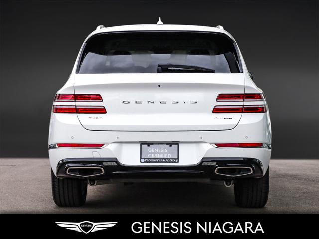 This 2024 GV80 2.5T Advanced is the top of the line package for the 4 cylinder 2.5T option. It represents a great entry point to a GV80 yet is still equipped with a long list of standard features that include the following -2.5L turbocharged inline 4-cylinder engine (300 hp 311 lb-ft) -All-Wheel Drive (AWD) with Terrain Mode Select -8-speed automatic transmission with steering wheel shift paddles -5-passenger seating -20'' aluminum alloy wheels with Michelin all-season tires -Genuine leather seating -Quad LED headlights with LED taillights side repeaters and reverse lights -Panoramic sunroof -Highway Driving Assist High Beam Assist Rear Cross-Traffic Collision-Avoidance Assist Forward Collision-Avoidance Assist and Intelligent Speed Limit Assist -Smart Cruise Control -14.5'' touch-screen navigation system -Head-Up Display (HUD) -Surround View Monitor -Blind-Spot View Monitor (BVM) -Premium Audio with 12 Speakers -Proximity keyless entry with push button start and remote engine start -Proximity-activated hands-free tailgate opening -Wireless charging -Heated leather steering wheel -Heated front seats and rear seats -Ventilated front seats -Rear occupant alert -Three-zone automatic climate control -Self-leveling rear suspension -Genesis Connected Services We are confident your shopping experience with us will be a luxury experience with our ''no pressure'' sales team who are here to help you make the right choice. We are conveniently located at 332 Ontario Street in St.Catharines right off the QEW. We look forward to having you here and experiencing the Genesis difference. **Free Carproof online! Specialist onsite for all credit approvals!**