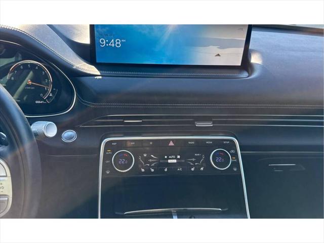 GENESIS GV80 3.5T PRESTIGE 2021 Moteur V6 biturbo 3.5L développant 375 chevaux Transmission intégrale AWD avancée Intérieur cuir Nappa avec sièges chauffants et ventilés avant et arrière Système audio Lexicon haut de gamme Toit ouvrant panoramique Affichage tête haute et instrumentation numérique 12 3 pouces Suspension adaptative à contrôle électronique Ensemble complet daides à la conduite Genesis Lexpérience à bord se distingue par un niveau de finition impressionnant. Lhabitacle propose des matériaux nobles incluant du cuir Nappa de qualité supérieure des garnitures en bois véritable et une insonorisation poussée qui crée une ambiance feutrée. Les sièges avant et arrière chauffants et ventilés assurent un confort optimal en toute saison tandis que les sièges avant à réglages électriques avec fonction mémoire sadaptent parfaitement à votre position de conduite idéale. Sur le plan technologique lécran central large avec navigation intégrée la compatibilité Apple CarPlay et Android Auto laffichage tête haute ainsi que le système audio Lexicon à multiples haut-parleurs transforment chaque trajet en expérience immersive. Linstrumentation numérique de 12 3 pouces offre une lecture claire et personnalisable des informations essentielles. La sécurité occupe une place centrale avec une suite complète daides à la conduite : assistance au maintien de voie régulateur de vitesse adaptatif avec fonction arrêt-départ surveillance des angles morts alerte de circulation transversale arrière freinage durgence autonome avec détection des piétons et bien plus encore. La suspension adaptative analyse la route en temps réel afin doptimiser stabilité et confort. Alliant puissance élégance et innovation ce véhicule incarne le summum du raffinement moderne. Venez lessayer dès aujourdhui chez Brossard Hyundai et découvrez par vous-même son niveau exceptionnel. Toujours vérifier lexactitude des équipements auprès du représentant chez Brossard Hyundai. GENESIS GV80 3.5T PRESTIGE 2021 3.5L Twin-Turbo V6 producing 375 horsepower Advanced All-Wheel Drive system Nappa leather interior with heated and ventilated front and rear seats Premium Lexicon audio system Panoramic sunroof Head-Up Display and 12.3-inch digital cluster Electronically controlled adaptive suspension Comprehensive Genesis driver assistance suite From the very first drive refined performance and advanced luxury immediately stand out. Powered by a robust 3.5-litre twin-turbocharged V6 delivering 375 horsepower this SUV provides confident acceleration and smooth power delivery. Its sophisticated all-wheel drive system enhances traction and stability making it exceptionally capable in varying road conditions. Inside craftsmanship takes center stage. The cabin showcases premium Nappa leather seating genuine wood trim and meticulous attention to detail throughout. Heated and ventilated front and rear seats ensure year-round comfort while power-adjustable front seats with memory settings provide personalized ergonomics for every drive. Technology integration is seamless. A large central infotainment display with built-in navigation Apple CarPlay and Android Auto compatibility a 12.3-inch digital instrument cluster and a Head-Up Display keep essential information easily accessible. The premium Lexicon sound system delivers rich immersive audio quality for an elevated driving experience. Safety is equally impressive featuring advanced driver-assistance technologies such as blind-spot monitoring rear cross-traffic alert adaptive cruise control with stop-and-go capability lane keeping assist and forward collision avoidance with pedestrian detection. The electronically controlled adaptive suspension continuously monitors road conditions to maximize ride comfort and handling precision. Blending performance sophistication and innovation this luxury SUV sets a high benchmark in its class. We invite you to experience it for yourself at Brossard Hyundai. Always verify equipment accuracy with your representative at Brossard Hyundai. *Concessionnaire Hyundai de premier rang dans la région de Montréal *Fondé en 1997 et en croissance continue depuis. *Service à la clientèle de qualité offrant réparation et entretien. *Inventaire complet de véhicules neufs et usagés. *Valeur des véhicules d'échange attrayante. *Facilité de financement grâce au service des finances. *Service après-vente comprenant pièces et réparation. *Dessert une large région incluant Brossard La Prairie Montréal etc. *Personnel dévoué et techniciens chevronnés pour une expérience d'achat agréable et avantageuse. *Le présent site utilise un générateur d'équipements caractéristiques et spécifications techniques automatisée basée sur des listes fournies par différentes sources publiques pour ce type de véhicule. Ces informations sont à titre indicatif seulement et ne doivent sous aucun prétexte être considérées comme étant la fiche technique officielle du véhicule concerné dans cette annonce. Veuillez confirmer la liste des équipements options et inclusions avec le concessionnaire vendeur car celles-ci peuvent différer. *This site uses an automated generator of equipment characteristics and technical specifications based on lists provided by various public sources for this type of vehicle. This information is for guidance only and should not be relied upon as the official specification sheet for the vehicle featured in this advert. Please confirm the list of equipment options and inclusions with the selling dealer as these may differ.