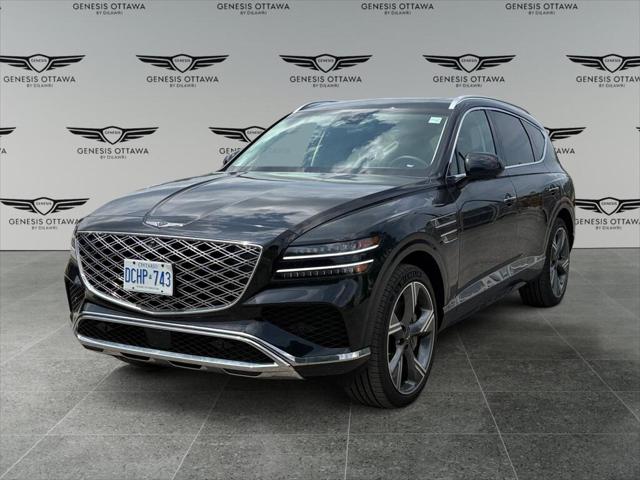 The Genesis GV80 in its sophisticated 3.5T Advanced trim boasts a sleek finish in striking color and offers unmatched performance with its all-wheel-drive (AWD) system. This SUV delivers exceptional handling powered by a dynamic 3.5L 6-cylinder engine. The exterior features include attractive alloy wheels and a bold design that exudes luxury. The spacious interior welcomes you with premium leather seats a luxurious leather steering wheel and inviting leatherette door trim inserts crafted for both comfort and elegance. With seating for 7 this SUV is perfect for family travel or adventures with friends. This model is equipped with state-of-the-art technology featuring a user-friendly navigation system and smart device integration for seamless connectivity on the go. Stay entertained with satellite radio and a top-notch sound system while enjoying the comfort of heated front and rear seats and a scenic sunroof allowing natural light in. Safety is prioritized with a comprehensive technology suite including adaptive cruise control lane assist and advanced brake assist systems ensuring peace of mind on every drive. A heads-up display and automatic parking elevate driving ease while the standard backup camera and parking sensors add convenience to every maneuver. This Genesis GV80 is an excellent choice for discerning families or tech-savvy individuals seeking luxury and advanced features in an SUV. With only 5000 km on the odometer it is practically new and ready for the road. Dont miss the opportunity to experience this luxurious ride. Contact us at the dealership today for more information or to schedule your test drive.