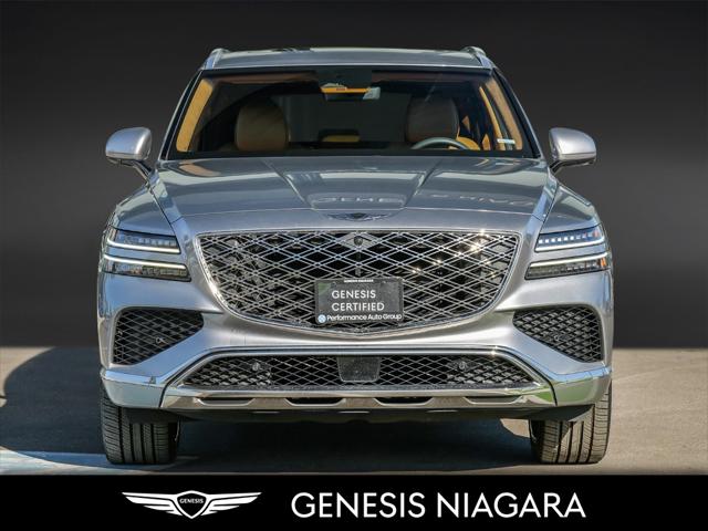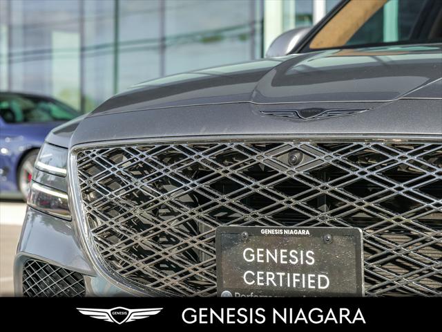 2025 GV80 2.5 Prestige The 2025 GV80 3.5 Prestige is our top trim level GV80 It comes fully loaded with the following features. 3.5L twin-turbocharged V6 engine (375 hp 391 lb-ft torque) 8-speed automatic transmission with steering wheel shift paddles All-Wheel Drive (AWD) with Terrain Mode Select 7-passenger seating 22'' aluminum alloy wheels with Michelin all-season tires Panoramic sunroof MLA Headlighs with LED taillights side repeaters and reverse lights Highway Driving Assist 2 High Beam Assist Rear Cross-Traffic Collision-Avoidance Assist Forward Collision-Avoidance Assist and Intelligent Speed Limit Assist Nappa leather seating Smart Cruise Control Heated and ventilated front seats and rear seats Proximity keyless entry with push button start and remote engine start Proximity-activated hands-free tailgate opening Heated leather steering wheel Wireless charging Rear occupant alert Three-zone automatic climate control Genesis Connected Services 27 OLED Instrument Cluster & Navigation System w/ AM/FM/HD Radio Air aroma diffuser Digital Key Fingerprint Recognition We are confident your shopping experience with us will be a luxury experience with our ''no pressure'' sales team who are here to help you make the right choice. We are conveniently located at 332 Ontario Street in St.Catharines right off the QEW. We look forward to having you here and experiencing the Genesis difference. **Free Carproof online! Specialist onsite for all credit approvals!**