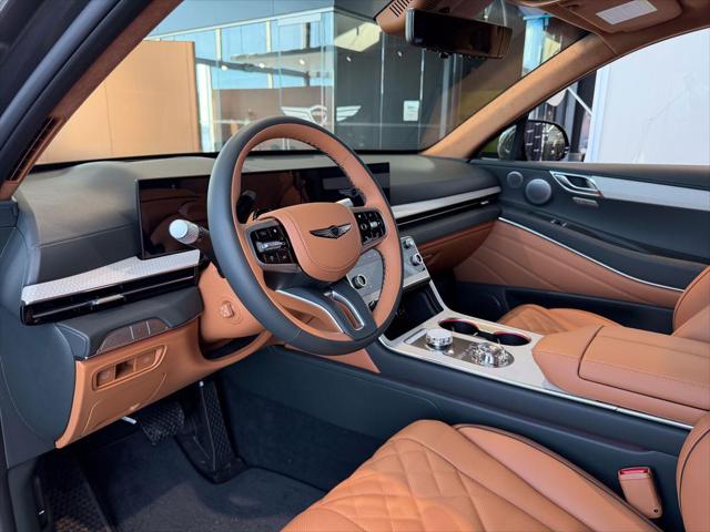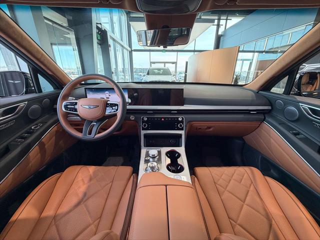 Our GV80's trim level is 3.5T Prestige AWD 7P. The interior delivers exceptional luxury and versatility with leather seating surfaces across three rows including power-folding third-row seats and 12-way adjustable heated and ventilated front seats with lumbar support and a smart posture care system. A heated leather steering wheel genuine wood trim and ambient lighting create a refined atmosphere while the integrated 27-inch OLED display provides seamless access to navigation connected services and entertainment through a Bang & Olufsen 18-speaker audio system. Every passenger enjoys tailored comfort with multi-zone climate control rear sunblinds and ample space enhanced by meticulous craftsmanship. Advanced safety technologies like Highway Driving Assist II Blind-Spot Collision-Avoidance and an Aerial View Camera System combine with automatic remote parking and collision mitigation features to ensure confidence on every journey. This vehicle has been upgraded with the following features: Soft Close Doors B&O Audio Cooled Seats HUD 360 Camera Sunroof Power Liftgate.