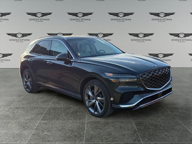 The 2026 Genesis GV70 2.5T Prestige AWD is a magnificent green all-wheel-drive SUV that delivers excellent handling and performance perfect for diverse Canadian landscapes. With its powerful 2.5L 4-cylinder engine and smooth automatic transmission this vehicle is geared for those who seek both power and efficiency. This GV70's exterior is elegantly framed with stylish alloy wheels complementing its sophisticated green body. Inside the luxurious tan leather seats provide the ultimate in comfort and class making every drive a first-class experience. Enjoy superior comfort with features like heated mirrors a heated steering wheel and power seats. Advanced technology surrounds you featuring a crisp navigation system and smart device integration for seamless connectivity. Safety and convenience are paramount with a backup camera lane assist adaptive cruise control and a heads-up display to ensure you're always in control. The automatic parking system and parking sensors take the hassle out of maneuvering in tight spaces. If you are discerning and seek a versatile SUV that combines luxury with state-of-the-art technology and safety the 2026 Genesis GV70 2.5T Prestige is ready to exceed your expectations. Contact our dealership today for more information and to book a test drive.