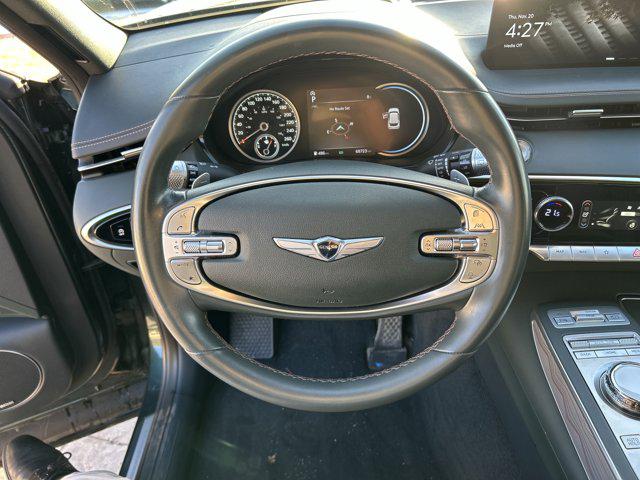 This Genesis GV70 delivers a Intercooled Turbo Premium Unleaded I-4 2.5 L/152 engine powering this Automatic transmission. CARDIFF GREEN Wireless Phone Connectivity Window Grid Antenna.*This Genesis GV70 Comes Equipped with These Options *Wheels: 19" x 8.0J Dark Hyper Silver Aluminum Valet Function Trip Computer Transmission: 8-Speed Automatic -inc: shift-by-wire paddle-shifters and drive mode select (comfort smart eco sport custom) Transmission w/Driver Selectable Mode and Oil Cooler Tracker System Tires: P235/55R19 AS Tire Specific Low Tire Pressure Warning Strut Front Suspension w/Coil Springs Steel Spare Wheel.****Payments O.A.C.*The advertised price does not include GST. Discounts may include available manufacturer discounts and/or incentives. Discounts and/or incentives from both the dealership and manufacturer may have certain criteria for eligibility and must be qualified for depending on the nature of the discount and model of vehicle involved. Discounts offered by the manufacturer have discrete legal regulations available on the corresponding manufacturer site. See dealer for all current discount eligibility details. Vehicle data is subject to change without notice. AMVIC Licensed Dealer.