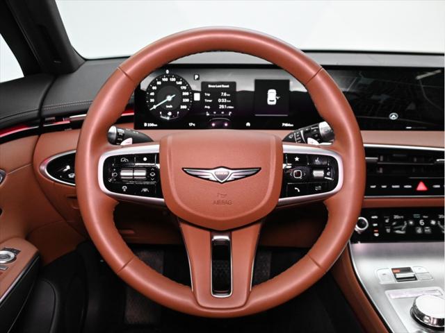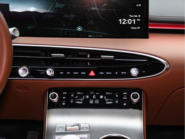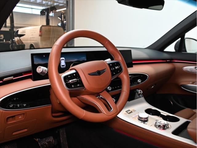 !!!Deux Sets de jantes (mags) et pneus!!! Moteur et performance Moteur 4 cylindres turbocompressé de 2 5 L Puissance : 300 ch à 5 800 tr/min Couple : 311 lb-pi de 1 650 à 4 000 tr/min Boîte automatique à 8 rapports Traction intégrale (AWD) Sélecteur de modes de conduite (Éco / Confort / Sport / Personnalisé) Consommation de carburant (L/100 km – approx.) Ville : 11 2 Route : 8 7 Combinée : 10 1 Caractéristiques extérieures Jantes en alliage de 21 po Phares à DEL quad et feux arrière à DEL Hayon intelligent électrique mains libres Toit ouvrant panoramique Rétroviseurs extérieurs chauffants et rabattables électriquement avec éclairage Genesis Essuie-glaces automatiques à détecteur de pluie Vitres arrière teintées Intérieur et confort Sièges garnis de cuir Sièges conducteur et passager à réglage électrique en 12 directions avec soutien lombaire Sièges avant chauffants et ventilés Sièges arrière extérieurs chauffants Volant chauffant Climatisation automatique à trois zones Colonne de direction à réglage électrique (inclinaison et télescopique) Éclairage dambiance intérieur Technologie et multimédia Écran OLED intégré de 27 po (tableau de bord et navigation) Services connectés Genesis Système de navigation avec info-trafic en temps réel Apple CarPlay™ et Android Auto™ sans fil Connectivité Bluetooth Recharge sans fil pour appareils mobiles Affichage tête haute Moniteur à vue panoramique (caméra 360°) Assistance au stationnement à distance Sécurité et aides à la conduite Assistance à lévitement de collision frontale (véhicules piétons cyclistes) Assistance à lévitement de collision dans les angles morts Alerte de collision transversale arrière avec freinage Assistance à la conduite sur autoroute II Régulateur de vitesse intelligent avec arrêt/démarrage Assistance au maintien et au suivi de voie Alerte dattention du conducteur Assistance à la sortie sécuritaire Assistance à lévitement de collision lors du stationnement (arrière)