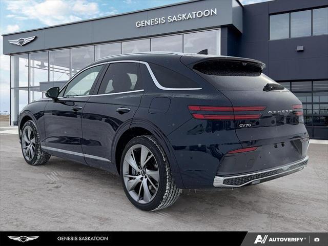 Our GV70's trim level is 2.5T Prestige. The interior of this luxury SUV is crafted for indulgent comfort and intelligent control featuring quilted Nappa leather seats with Ergo Motion technology heating ventilation and smart posture assist for both driver and passenger. A sweeping 27-inch OLED display integrates navigation media and vehicle data in stunning clarity enhanced by a 16-speaker Bang & Olufsen premium audio system with Dolby Atmos for an immersive listening experience. Everyday convenience is elevated with Smart Cruise Control with Stop & Go memory settings for the drivers seat mirrors and steering column as well as a power liftgate and remote start for seamless accessibility. Safety and driver assistance technologies provide peace of mind through Highway Driving Assist II Forward Collision-Avoidance with Pedestrian Detection Blind-Spot and Rear Cross-Traffic Collision Avoidance Evasion Assist and a full Aerial View Camera System with Remote Parking. This vehicle has been upgraded with the following features: B&O Audio HUD Cooled Seats Sunroof 360 Camera HUD Power Liftgate.