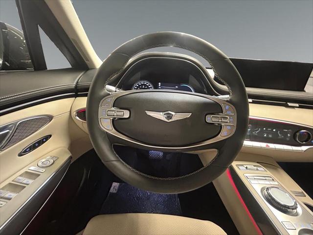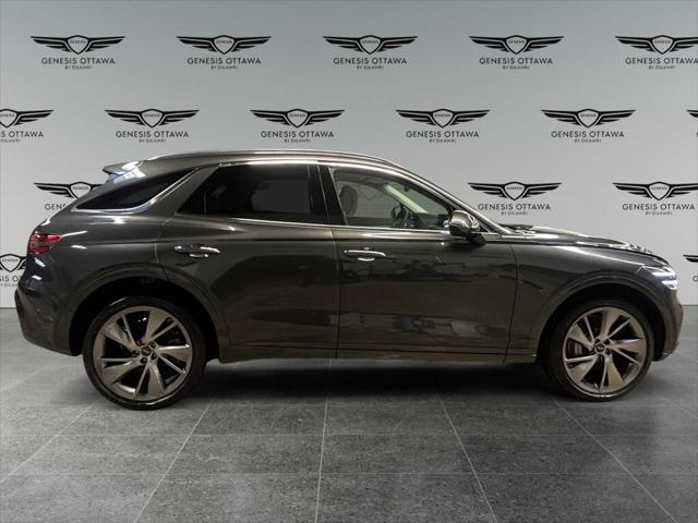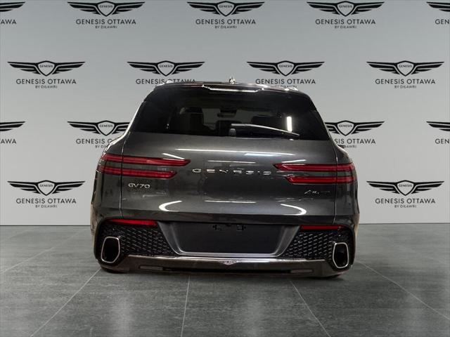 Experience the future of driving with the 2025 Genesis GV70 2.5T Advanced Plus AWD in a sophisticated gray hue. This all-wheel drive SUV offers remarkable handling ensuring a seamlessly smooth ride whether you're navigating city streets or cruising on highways. The exterior showcases a refined aesthetic with its alloy wheels and elegant design while inside you'll find a luxurious tan interior that exudes comfort and style. Leather seats and a leather steering wheel provide premium touchpoints and both the front and rear seats are heated for optimal comfort in all seasons. Cooled front seats are a welcomed feature for warmer months. Cutting-edge technology is at your fingertips with the comprehensive navigation system and smart device integration. A heads-up display keeps important information within your sightline for safer driving. Key safety features such as a backup camera lane assist parking sensors and adaptive cruise control are integrated offering peace of mind on every journey. This vehicle is perfect for discerning drivers who value luxury performance and technology in their daily commute or weekend adventures. Contact the dealership today to arrange a test drive and explore all the features the 2025 Genesis GV70 2.5T Advanced Plus AWD has to offer.