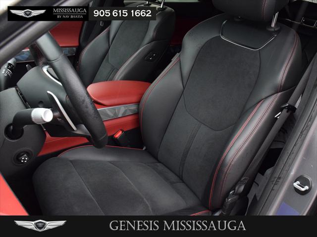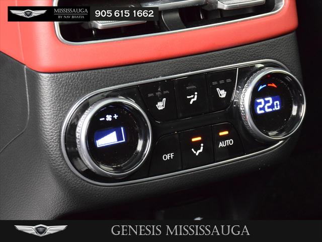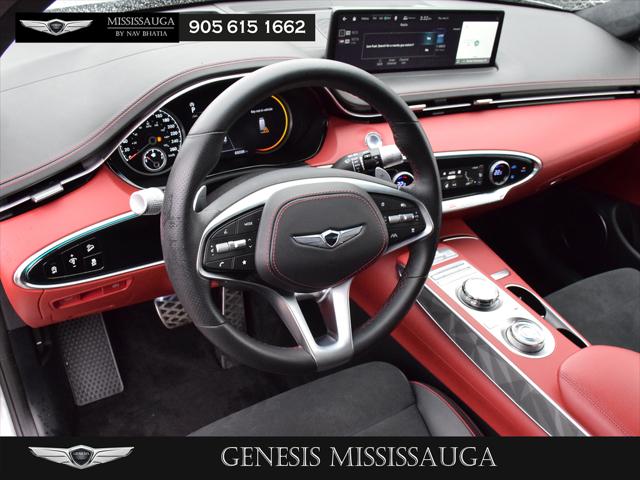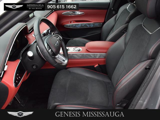 Elevate your drive with this Certified Pre-Owned 2023 Genesis GV70 2.5T Prestige finished in elegant Savile Silver over a striking Obsidian Black and Red leather interior. As a Genesis CPO vehicle it has undergone a comprehensive multi-point inspection and offers extended warranty coverage roadside assistance and added peace of mind you simply wont get with a typical pre-owned SUV. Powered by a responsive 2.5L turbocharged engine paired with an 8-speed automatic and full-time AWD the GV70 delivers confident refined performance in all conditions. The Prestige package surrounds you with luxury including heated and ventilated front seats heated rear seats heated steering wheel heads-up display panoramic sunroof navigation and an aerial view camera system. Advanced safety features such as blind spot monitoring forward collision avoidance lane keeping assist and driver monitoring technology ensure every journey is secure. This CPO GV70 blends performance technology and luxurybacked by the confidence of Genesis certification.