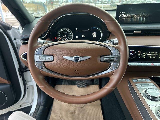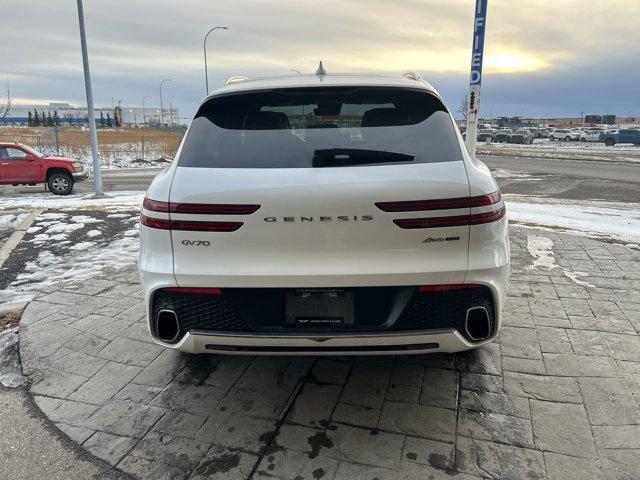 This Genesis GV70 boasts a Intercooled Turbo Premium Unleaded I-4 2.5 L/152 engine powering this Automatic transmission. UYUNI WHITE HAVANA BROWN/BLUE LEATHER SEATING SURFACES Wireless Phone Connectivity.*This Genesis GV70 Comes Equipped with These Options *Window Grid Antenna Wheels: 19" x 8.0J Dark Hyper Silver Aluminum Valet Function Trip Computer Transmission: 8-Speed Automatic -inc: shift-by-wire paddle shifters and drive mode select (comfort eco sport sport plus and custom) Transmission w/Driver Selectable Mode and Oil Cooler Tracker System Tires: P235/55R19 AS Tire Specific Low Tire Pressure Warning Strut Front Suspension w/Coil Springs.****Payments O.A.C.*The advertised price does not include GST. Discounts may include available manufacturer discounts and/or incentives. Discounts and/or incentives from both the dealership and manufacturer may have certain criteria for eligibility and must be qualified for depending on the nature of the discount and model of vehicle involved. Discounts offered by the manufacturer have discrete legal regulations available on the corresponding manufacturer site. See dealer for all current discount eligibility details. Vehicle data is subject to change without notice. AMVIC Licensed Dealer.