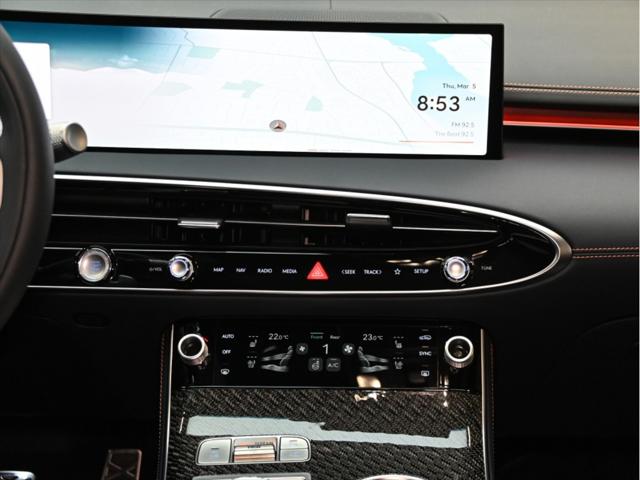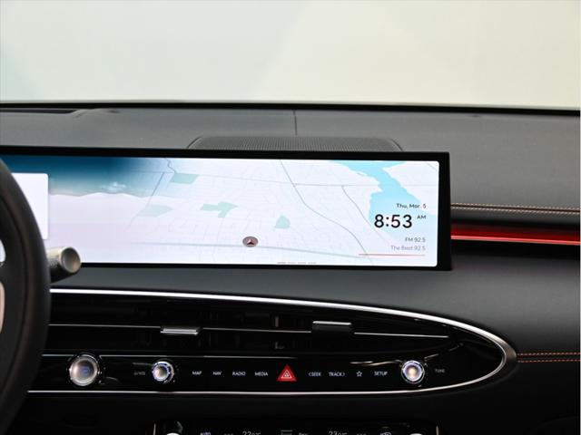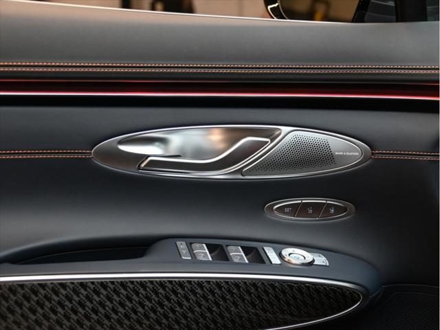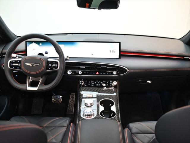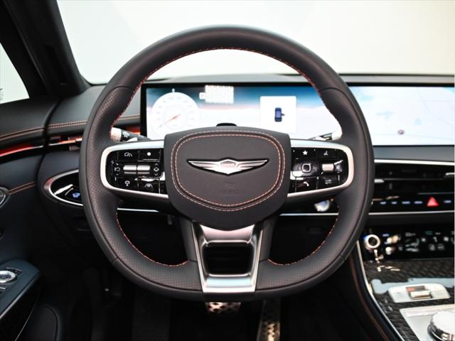 Moteur et performance Moteur V6 biturbo de 3 5 L 375 chevaux 391 lb-pi de couple Transmission automatique à 8 rapports Traction intégrale (AWD) Suspension à contrôle électronique avec lecture de la route Différentiel arrière à glissement limité électronique (E-LSD) Contrôle de départ (Launch Control) Sélecteur de modes de conduite (Eco Comfort Sport Sport+ Custom) Mode Sport+ Extérieur Jantes en alliage Sport de 21 pouces Ensemble esthétique Sport avec accents chrome foncé Phares à DEL quadruples Feux arrière à DEL Toit panoramique Rétroviseurs extérieurs rabattables électriquement avec éclairage Genesis Hayon intelligent mains libres Essuie-glaces automatiques à détection de pluie Intérieur Sièges en cuir Nappa Sièges avant chauffants et ventilés Sièges arrière chauffants Sièges avant à réglage électrique avec mémoire conducteur Volant chauffant Pédales sport en aluminium Éclairage dambiance intérieur Volant sport gainé de cuir Technologie Écran tactile de navigation de 14 5 pouces Services connectés Genesis Apple CarPlay et Android Auto Système audio haut de gamme Lexicon (15 haut-parleurs) Chargeur de téléphone sans fil Affichage tête haute (Head-Up Display) Clé numérique Genesis Tableau de bord numérique 3D de 12 3 pouces Sécurité et assistance à la conduite Assistance à lévitement de collision frontale Assistance à lévitement de collision dans langle mort Moniteur dangle mort avec affichage au tableau de bord Assistance au maintien de voie Assistance au suivi de voie Régulateur de vitesse intelligent avec arrêt/démarrage Assistance à la conduite sur autoroute II Assistance anticollision trafic transversal arrière Caméra panoramique 360° Assistance au stationnement intelligent à distance
