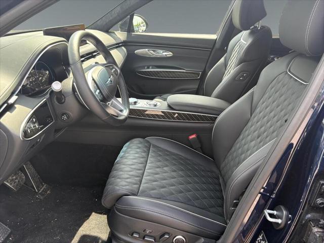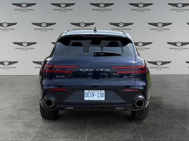 Experience the ultimate in luxury and performance with the new Genesis GV70 3.5T Sport Plus w-LSD. This stunning blue AWD SUV is equipped with a 3.5L 6-cylinder engine and a smooth automatic transmission making every drive an exhilarating yet controlled adventure. The elegant exterior is paired with refined black leather interior providing a sophisticated and serene environment for all passengers. Offering remarkable styling the GV70 comes with features like retractable alloy wheels and a classy sunroof/moonroof that accentuate its fresh and modern design. Stay connected and safe with advanced technologies including a state-of-the-art navigation system heads-up display and smart device integration. The GV70 prioritizes safety with essential features such as a backup camera lane assist parking sensors and advanced brake assist. Premium comforts include air conditioning heated and cooled seats and convenient power features like windows and seats. If you're an enthusiast of high-performance vehicles seeking both power and luxury this GV70 is designed for you. Don't miss your chance to own this sophisticated SUV. Contact us today for more details and schedule a test drive to feel the exceptional blend of comfort and innovation this Genesis offers.