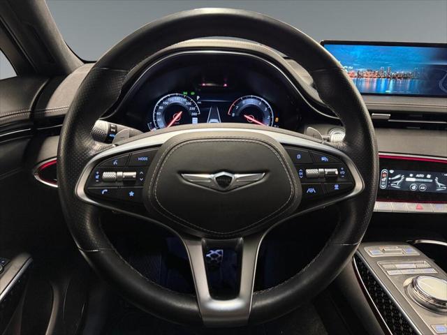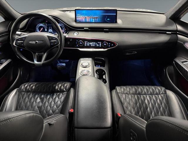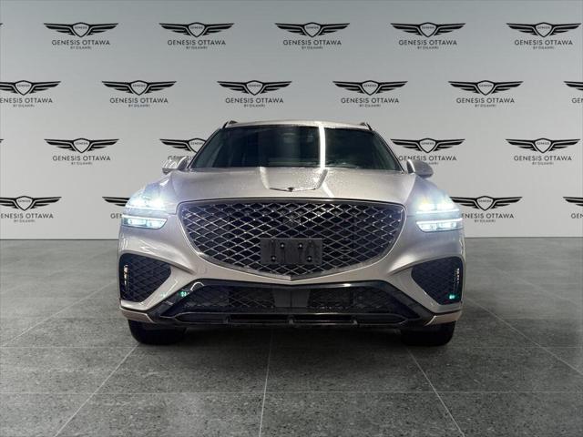 The 2023 Genesis GV70 3.5T Sport Plus AWD in a stunning silver finish offers a remarkable all-wheel-drive experience making it a compelling choice for those seeking performance paired with unparalleled handling. Equipped with a dynamic 3.5L 6-cylinder engine this SUV ensures an exhilarating drive with 375 horsepower ready to conquer the roads. Its exterior radiates elegance complimented by stylish alloy wheels that add a touch of sophistication. Inside passengers will indulge in the luxury of black leather seating enhanced by thoughtful design elements like a heated steering wheel and Leather Door Trim Insert projecting a refined and comfortable atmosphere. Stay connected and confident with cutting-edge technology features such as a crisp navigation system and a heads-up display that keeps key information right in your line of sight. Safety is paramount with accessories like the backup camera automatic parking lane assist and adaptive cruise control all designed to enhance your driving experience. Perfect for the tech-savvy driver who values performance and luxury the GV70 3.5T Sport Plus AWD offers both convenience and style. Its premium features like smart device integration and cooled and heated seats ensure comfort year-round. Reach out to our dealership today to learn more about this remarkable SUV and elevate your driving enjoyment to new heights.