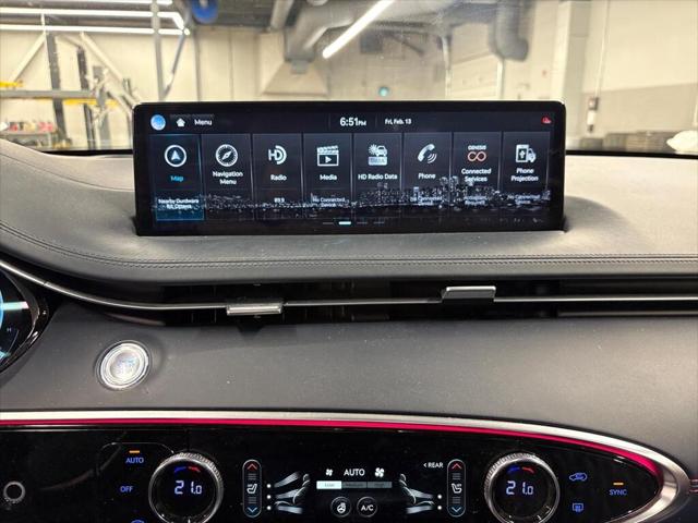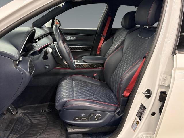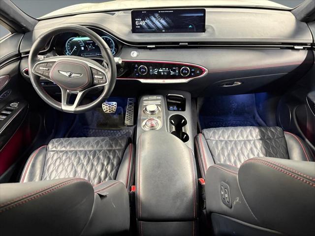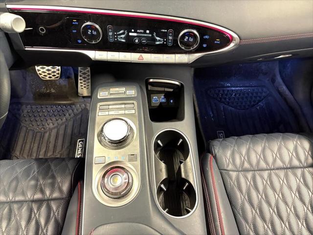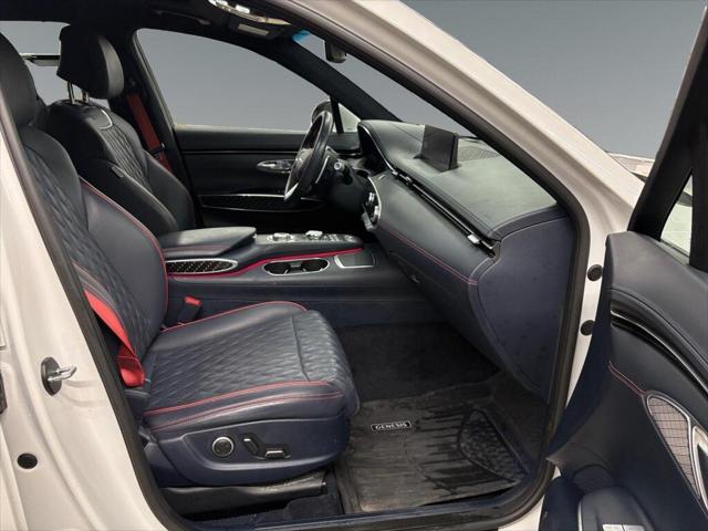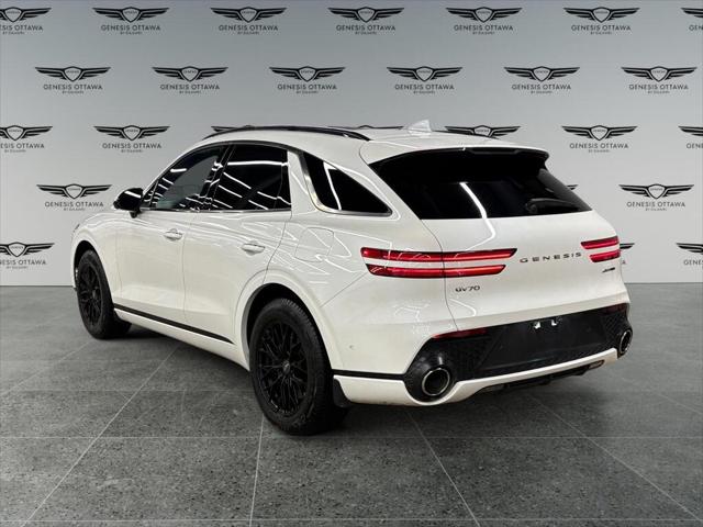 The 2023 Genesis GV70 3.5T Sport Plus AWD in a striking white finish promises an engaging driving experience with its capable AWD drivetrain. Designed for those who appreciate performance and comfort this SUV handles seamlessly on every journey regardless of the terrain. Its elegant exterior is complemented by alloy wheels and sleek lines that underscore its modern appeal. Step inside to a luxurious black interior that offers refined comfort with leather seats and a leather-wrapped steering wheel. The sunroof/moonroof ensures an airy cabin atmosphere enhancing every ride. Equipped with the latest technology the GV70 features a heads-up display for a safe and engaging driving experience while the advanced navigation system and smart device integration keep you connected effortlessly. Safety is paramount with features like lane assist automatic parking and a comprehensive array of parking sensors. Perfect for tech-savvy individuals or families looking for reliable performance in a stylish package the GV70 invites you to experience its myriad of features. Contact our dealership today to learn more and schedule a test drive!