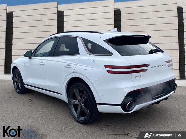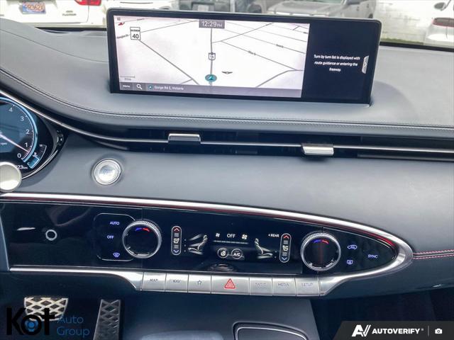 2024 Genesis GV70 3.5T Sport Plus Certified Only 8 000 km Locally DrivenFor sale at Genesis Victoria this 2024 Genesis GV70 Sport Plus combines exhilarating performance with premium luxury. With only 8 000 km this locally driven and certified inspected SUV is in exceptional condition and includes no-charge maintenance up to 100 000 km providing outstanding long-term value and peace of mind.Powered by a 3.5L twin-turbo V6 the Sport Plus delivers thrilling acceleration and refined handling while the interior surrounds you in comfort with Nappa leather seating panoramic sunroof 12.3-inch digital display and a premium Lexicon audio system. Safety and confidence come standard with Genesis Active Safety Suite including adaptive cruise lane keep assist and blind-view monitoring.Experience true modern luxury with this near-new GV70 Sport Plus where performance meets sophistication. Available now at Genesis Victoria book your test drive today!