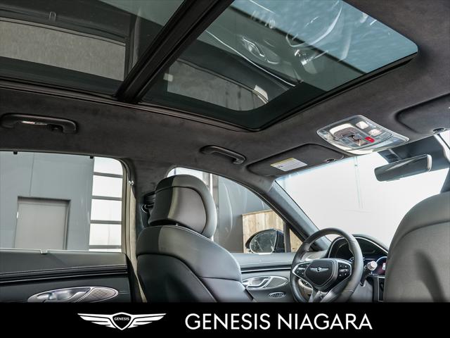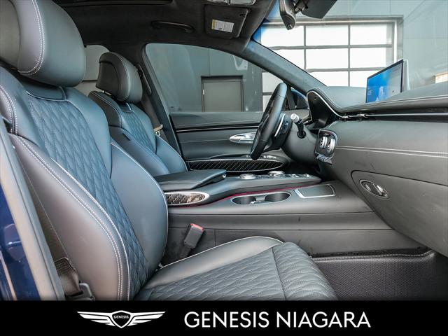 This 2023 GV70 3.5T Sport Plus is fully loaded with every possible option including a 12.3'' 3D TFT LCD digital instrument cluster. Its road presence is made recognizable by the 21'' Dark Sputtering alloy wheels with Michelin all-season tires that are equipped on this GV70. 3.5L twin-turbocharged V6 engine (375 hp 391 lb-ft torque) Electronic Control Suspension with Road Preview Lexicon Premium Audio with 16-Speakers Head-Up Display (HUD) 21'' aluminum alloy wheels (Sport) Sport Appearance - Unique front and rear facia with G Matrix pattern -Unique 21'''' aluminum alloy wheels -Large three dimensional air intake -Three dimensional skid plate pattern -Dark chrome unique front grill pattern -Blacked out grille surround bezel -U Microfibre suede headliner Nappa leather seating with suede Ergo Seat with 16-way drivers power-adjustment and bolsters Aluminum Sports Trim Alloy Pedals Nappa leather seating with quilting (Sport) Carbon Fiber Trim Laminated / Acoustic Rear Door Glass Microfibre suede headliner Remote Smart Parking Assist (RSPA) Parking Collision Avoidance-Assist Rear (PCA-R) 12.3'' 3D TFT LCD digital instrument cluster Surround View Monitor Blind-Spot View Monitor (BVM) Manual Rear Side Sunshades We are confident your shopping experience with us will be a luxury experience with our ''no pressure'' sales team who are here to help you make the right choice. We are conveniently located at 332 Ontario Street in St.Catharines right off the QEW. We look forward to having you here and experiencing the Genesis difference. **Free Carproof online! Specialist onsite for all credit approvals!**