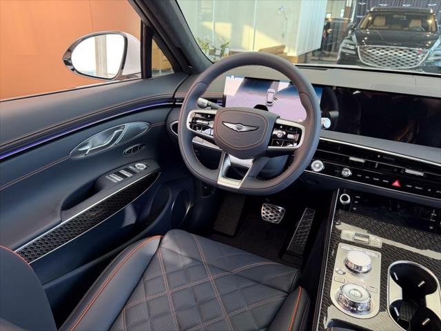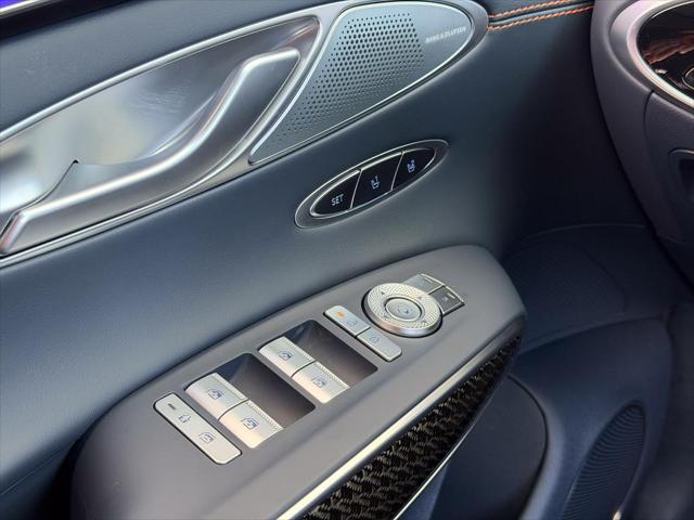 Our GV70's trim level is 3.5T Sport Quilting. The cabin is meticulously designed for first-class comfort and control featuring quilted Nappa leather seats with heating ventilation and Ergo Motion functionality along with 16-way power adjustment smart posture assist and memory settings for personalized positioning. The cockpits technology is anchored by a 27-inch OLED display that integrates navigation vehicle settings and entertainment enhanced by a Bang & Olufsen 16-speaker premium sound system with Dolby Atmos for a concert-like experience. Convenience is refined through Smart Cruise Control with Stop & Go proximity key access remote start a power liftgate and multiple power outlets for versatile connectivity. Advanced safety and driver assistance systems deliver reassurance through Highway Driving Assist II Forward Collision-Avoidance with Pedestrian Detection Blind-Spot Collision-Avoidance Evasion Assist and a full 360° Aerial View Camera System with Remote Parking. This vehicle has been upgraded with the following features: B&O Audio HUD Cooled Seats Sunroof 360 Camera HUD Power Liftgate.