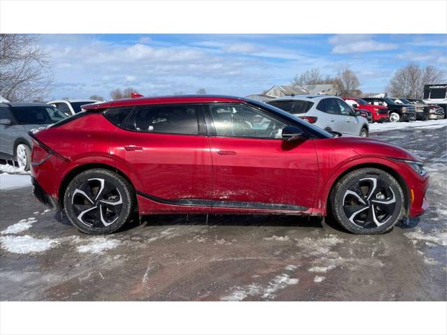 Kia EV6 Land GT-Line Pkg 2 2024 Transmission intégrale (AWD) Autonomie élevée Recharge ultra-rapide 800V Intérieur GT-Line haut de gamme Toit ouvrant Écran panoramique double Sièges chauffants et ventilés Système audio premium Aides à la conduite avancées Caméra 360° Offrant une accélération impressionnante et une technologie de pointe ce multisegment électrique redéfinit la conduite moderne. La version Land GT-Line avec ensemble 2 se distingue par son équilibre parfait entre performance autonomie et luxe idéale pour affronter les conditions variées avec assurance. Le design audacieux et aérodynamique attire immédiatement le regard tandis que lhabitacle spacieux propose des matériaux raffinés et une finition soignée. Les sièges avant chauffants et ventilés le volant chauffant et léclairage ambiant créent une atmosphère confortable en toute saison. Le double écran incurvé intègre un système multimédia intuitif avec compatibilité Apple CarPlay et Android Auto. Sous le capot la motorisation électrique jumelée à la traction intégrale procure une puissance instantanée et une excellente stabilité. Grâce à son architecture 800V la recharge rapide permet de récupérer une grande partie de lautonomie en peu de temps ce qui est idéal pour les longs trajets. Côté sécurité on retrouve un ensemble complet daides à la conduite : freinage durgence autonome régulateur de vitesse adaptatif assistance au maintien de voie surveillance des angles morts et caméra à 360 degrés. Tout est conçu pour offrir une tranquillité desprit maximale. Équipements de série notables : jantes en alliage hayon électrique intelligent climatisation automatique à deux zones accès sans clé avec démarrage par bouton recharge sans fil sièges en cuir synthétique et multiples ports USB. Venez découvrir et essayer ce véhicule chez Brossard Hyundai dès aujourdhui. Toujours vérifier lexactitude des équipements auprès du représentant chez Brossard Hyundai. Kia EV6 Land GT-Line Pkg 2 2024 Highlighted options: All-Wheel Drive Long driving range Ultra-fast 800V charging Premium GT-Line interior Sunroof Dual panoramic display Heated & ventilated seats Premium sound system Advanced driver assistance 360° camera Delivering thrilling acceleration and cutting-edge technology this electric crossover sets a new benchmark for modern driving. The Land GT-Line Package 2 trim stands out with its perfect blend of performance range and refinement making it well-suited for diverse driving conditions. Its bold aerodynamic exterior design commands attention while the spacious cabin offers upscale materials and meticulous craftsmanship. Heated and ventilated front seats a heated steering wheel and ambient lighting ensure year-round comfort. The curved dual-screen display provides an intuitive infotainment system with Apple CarPlay and Android Auto integration. The dual-motor electric powertrain combined with all-wheel drive delivers instant torque and confident handling. Thanks to its advanced 800V architecture ultra-fast charging capability allows you to regain substantial range in a short timeideal for both daily commutes and longer journeys. On the safety front it comes equipped with a full suite of driver assistance technologies including forward collision avoidance adaptive cruise control lane keeping assist blind-spot monitoring and a 360-degree camera system for enhanced visibility. Key standard features include alloy wheels smart power liftgate dual-zone automatic climate control keyless entry with push-button start wireless charging synthetic leather seating and multiple USB ports. Come experience this vehicle for yourself at Brossard Hyundai today. Always verify equipment accuracy with a representative at Brossard Hyundai. *Concessionnaire Hyundai de premier rang dans la région de Montréal *Fondé en 1997 et en croissance continue depuis. *Service à la clientèle de qualité offrant réparation et entretien. *Inventaire complet de véhicules neufs et usagés. *Valeur des véhicules d'échange attrayante. *Facilité de financement grâce au service des finances. *Service après-vente comprenant pièces et réparation. *Dessert une large région incluant Brossard La Prairie Montréal etc. *Personnel dévoué et techniciens chevronnés pour une expérience d'achat agréable et avantageuse. *Le présent site utilise un générateur d'équipements caractéristiques et spécifications techniques automatisée basée sur des listes fournies par différentes sources publiques pour ce type de véhicule. Ces informations sont à titre indicatif seulement et ne doivent sous aucun prétexte être considérées comme étant la fiche technique officielle du véhicule concerné dans cette annonce. Veuillez confirmer la liste des équipements options et inclusions avec le concessionnaire vendeur car celles-ci peuvent différer. *This site uses an automated generator of equipment characteristics and technical specifications based on lists provided by various public sources for this type of vehicle. This information is for guidance only and should not be relied upon as the official specification sheet for the vehicle featured in this advert. Please confirm the list of equipment options and inclusions with the selling dealer as these may differ.