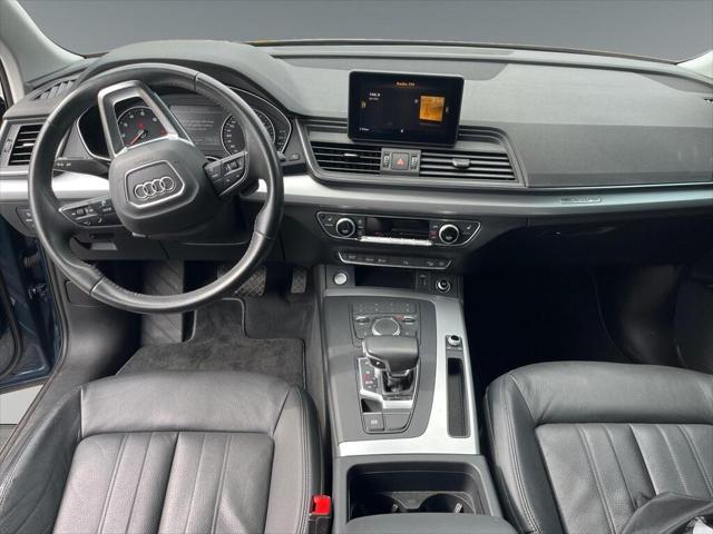 The 2018 Audi Q5 2.0 TFSI quattro Komfort S tronic in elegant black with an AWD drivetrain guarantees an impressive handling experience both on and off the road. This stylish SUV effortlessly combines the robust nature of its body with a sophisticated design making it a head-turner on any street. The sleek black exterior is accompanied by alloy wheels that enhance its sporty stance while the interior features plush black leather seats that invite you into a realm of comfort and luxury. With a leather steering wheel and leather/metal-look gear shifter every touch point is designed for quality. This Audi Q5 comes packed with technology and features to enhance your drive. Stay connected with Bluetooth connectivity and smart device integration. Enjoy effortless control with cruise control and keyless entry while heated seats and mirrors ensure you're ready for any weather. The Audi provides peace of mind with its extensive safety features including brake assist to ensure a safe driving experience. Perfect for families or individuals looking for a comfortable yet dynamic driving experience the Audi Q5 comfortably accommodates any lifestyle with its refrigerated/cooled glove box and convenience features like power windows and seats. Embrace the luxury and performance of Audi and book a test drive at the dealership now.