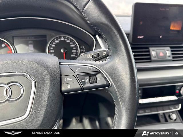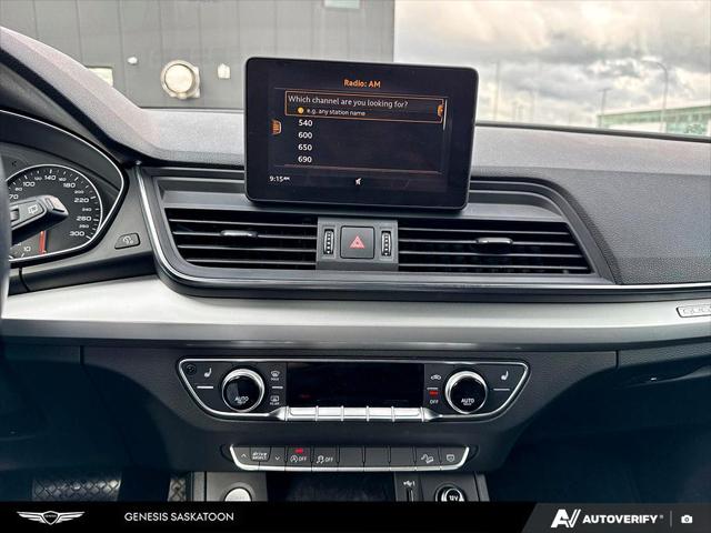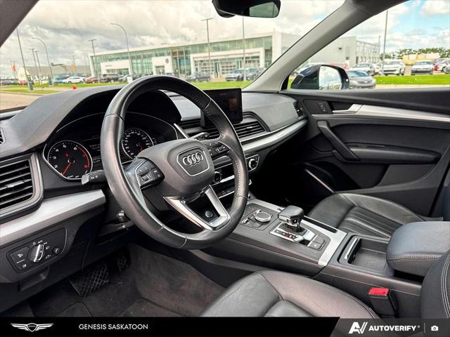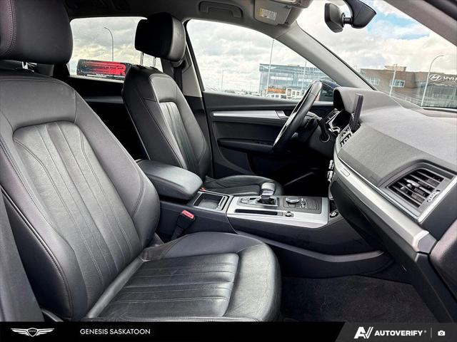 Our Q5's trim level is Komfort 45 TFSI quattro. This SUV is more than a simple family vehicle with luxury features like heated leather bucket seats with contrast stitching a leather steering wheel proximity key with push button start proximity cargo access and voice activated LCD touchscreen infotainment with wireless Apple CarPlay. The style continues on the exterior with a dual tailpipe aluminum alloy wheels programmable LED lighting fog lamps and perimeter lights. Drive in confident safety with collision mitigation pedestrian braking blind spot monitoring and a back up camera. This vehicle has been upgraded with the following features: Leather Seats Heated Seats Apple Carplay Android Auto Heated Steering Wheel Power Liftgate Blind Spot Detection.