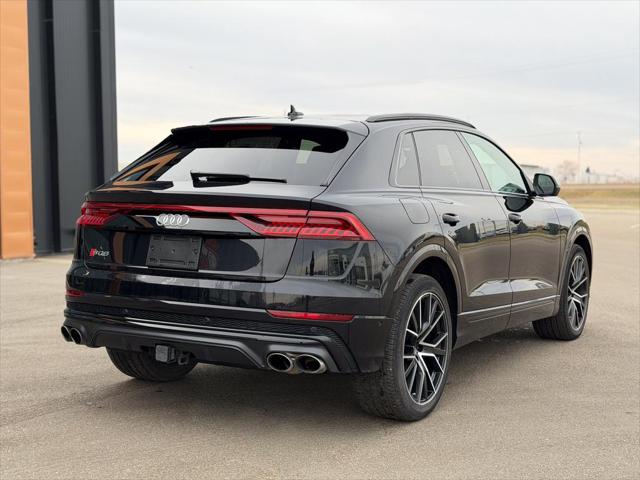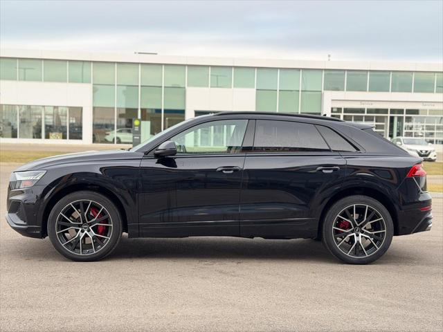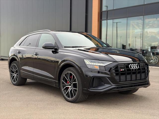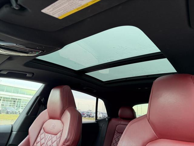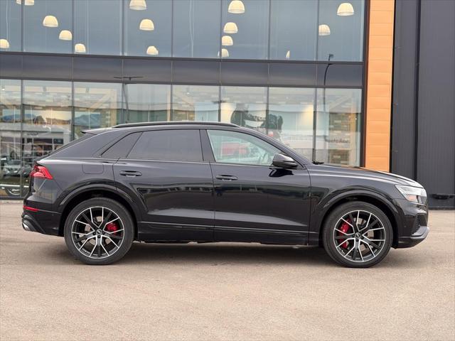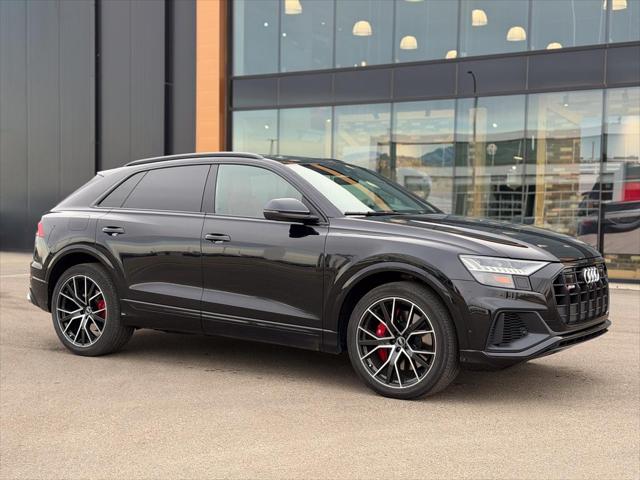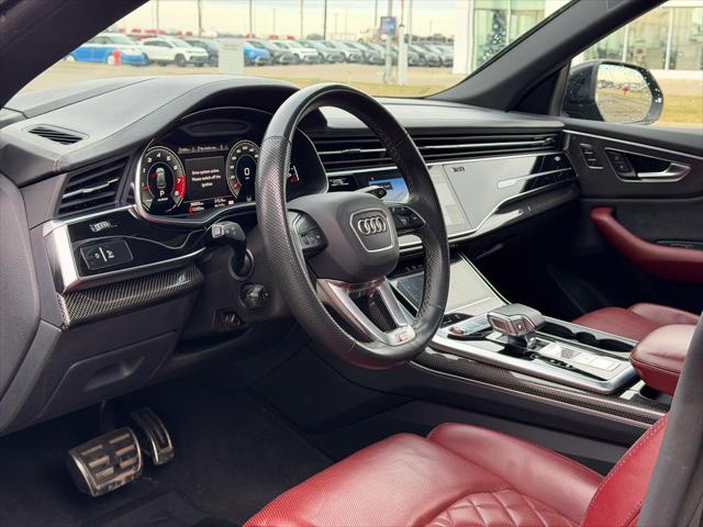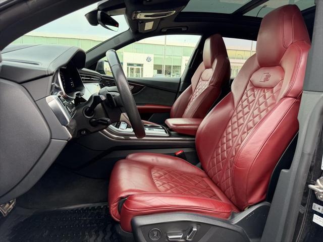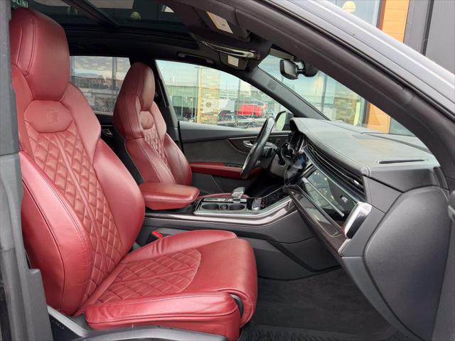 Our SQ8's trim level is 4.0 TFSI quattro. Heated and cooled Valcona leather seats and extended leather upholstery offer a luxurious experience under the power sunroof and futuristic heads up display in this beautiful SQ8. Audi Connect infotainment keeps you connected with navigation wireless Apple CarPlay wi-fi Audi smartphone integration and a Bang and Olufsen 3D premium sound system. Adaptive auto leveling suspension with driver selectable modes makes for an aggressive dynamic experience or a soft easy rolling drive with the press of a button all while a heated steering wheel proximity keyless entry with a power liftgate memory settings a refrigerated glove box and carbon fiber interior accents provide a stylish and comfortable cabin. This SUV is also equipped with Audi Pre Sense including distance pacing cruise with stop and go lane keep assist collision avoidance assist blind spot assist parking sensors and an aerial view 360 camera. This vehicle has been upgraded with the following features: Cooled Seats Sunroof Leather Seats Heads Up Display Navigation Heated Seats Apple Carplay.