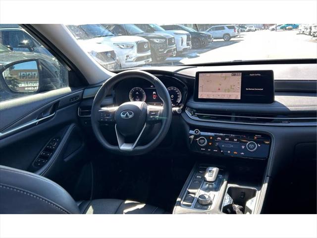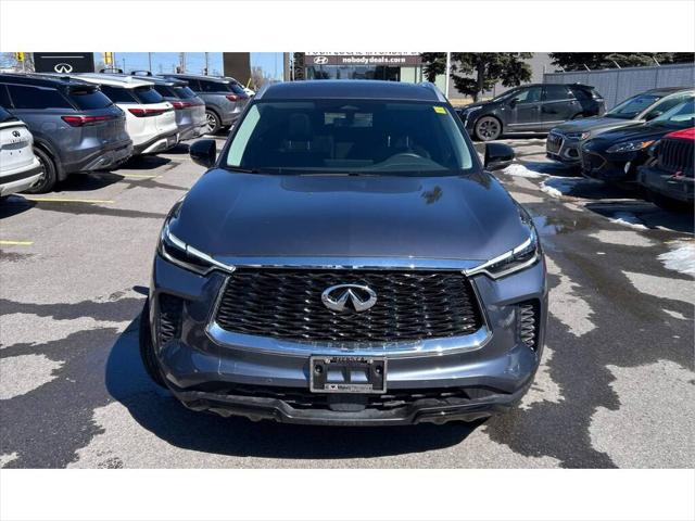 INFINITI QX60 LUXE AWD 2023 AWD intelligent moteur V6 3.5 L boîte automatique 9 rapports toit ouvrant panoramique sièges en cuir chauffants Apple CarPlay et Android Auto écran tactile avec navigation caméra 360° régulateur de vitesse assistance au maintien de voie hayon électrique démarrage à bouton-poussoir. Le point fort de ce VUS réside dans son équilibre remarquable entre luxe performance et polyvalence. Pensé pour offrir un confort haut de gamme à toute la famille ce modèle se distingue par une conduite fluide et silencieuse idéale autant pour les trajets urbains que pour les longues escapades. Son rouage intégral intelligent optimise ladhérence en toutes conditions assurant une confiance accrue au volant. Sous le capot le moteur V6 développe une puissance robuste tout en conservant une excellente souplesse parfaitement jumelé à une transmission automatique moderne qui favorise des changements de vitesse précis. Lhabitacle spacieux propose trois rangées de sièges avec une finition raffinée des matériaux de qualité supérieure et une insonorisation soignée. Parmi les équipements de série on retrouve : sièges avant chauffants à réglage électrique volant chauffant système audio haute fidélité écran multimédia intuitif compatibilité smartphone climatisation automatique tri-zone sièges de deuxième rangée coulissants accès sans clé et démarrage à distance. Côté sécurité plusieurs technologies avancées sont incluses telles que le freinage durgence automatique la détection des angles morts lalerte de circulation transversale et les capteurs de stationnement. Polyvalent et sophistiqué ce véhicule répond parfaitement aux besoins des conducteurs exigeants recherchant espace confort et sécurité. Venez lessayer chez Brossard Hyundai et toujours vérifier lexactitude des équipements auprès du représentant chez Brossard Hyundai. INFINITI QX60 LUXE AWD 2023 Intelligent AWD 3.5L V6 engine 9-speed automatic transmission panoramic sunroof heated leather seats Apple CarPlay and Android Auto touchscreen with navigation 360-degree camera Cruise control lane keeping assist power liftgate push-button start. The standout strength of this SUV lies in its exceptional balance of luxury performance and versatility. Designed to deliver premium comfort for the whole family it offers a smooth and quiet ride that excels in both city driving and long-distance travel. Its intelligent all-wheel-drive system enhances traction and stability providing added confidence in varying road conditions. Under the hood the V6 engine delivers strong and refined power paired with a modern automatic transmission that ensures seamless gear changes. Inside the spacious cabin features three rows of seating high-quality materials and a refined design focused on comfort and practicality. Standard equipment includes heated front seats with power adjustment a heated steering wheel a premium audio system an intuitive infotainment display smartphone integration tri-zone automatic climate control sliding second-row seats keyless entry and remote start. Safety is also a priority with advanced features such as automatic emergency braking blind-spot monitoring rear cross-traffic alert and parking sensors. Versatile and upscale this vehicle is ideal for drivers seeking space comfort and advanced technology in a refined package. Come test drive it today at Brossard Hyundai and always verify equipment accuracy with a representative at Brossard Hyundai. *Concessionnaire Hyundai de premier rang dans la région de Montréal *Fondé en 1997 et en croissance continue depuis. *Service à la clientèle de qualité offrant réparation et entretien. *Inventaire complet de véhicules neufs et usagés. *Valeur des véhicules d'échange attrayante. *Facilité de financement grâce au service des finances. *Service après-vente comprenant pièces et réparation. *Dessert une large région incluant Brossard La Prairie Montréal etc. *Personnel dévoué et techniciens chevronnés pour une expérience d'achat agréable et avantageuse. *Le présent site utilise un générateur d'équipements caractéristiques et spécifications techniques automatisée basée sur des listes fournies par différentes sources publiques pour ce type de véhicule. Ces informations sont à titre indicatif seulement et ne doivent sous aucun prétexte être considérées comme étant la fiche technique officielle du véhicule concerné dans cette annonce. Veuillez confirmer la liste des équipements options et inclusions avec le concessionnaire vendeur car celles-ci peuvent différer. *This site uses an automated generator of equipment characteristics and technical specifications based on lists provided by various public sources for this type of vehicle. This information is for guidance only and should not be relied upon as the official specification sheet for the vehicle featured in this advert. Please confirm the list of equipment options and inclusions with the selling dealer as these may differ.