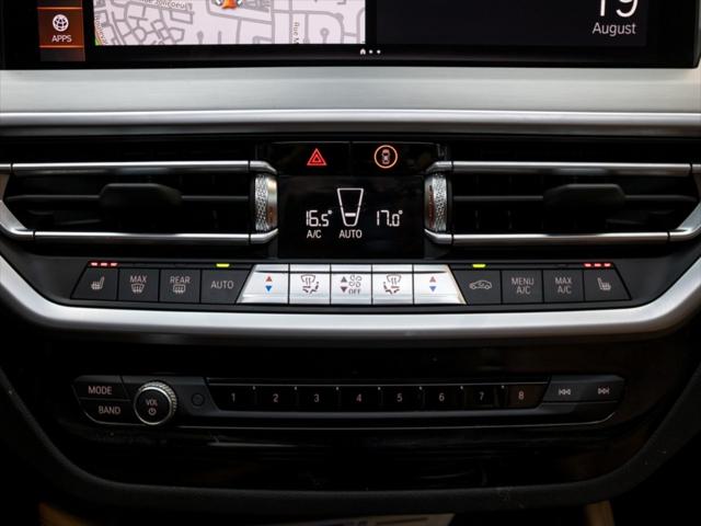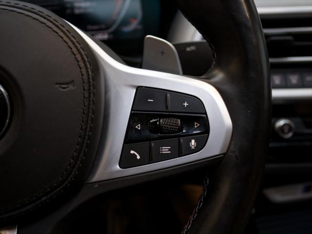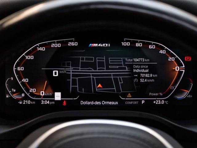 Moteur & Performance Moteur : 6 cylindres en ligne 3 0 L TwinPower Turbo avec hybridation légère 48V Puissance : 382 ch @ 5 800–6 500 tr/min Couple : 369 lb-pi @ 1 800–5 000 tr/min Transmission : Automatique sport à 8 rapports avec palettes de changement Transmission intégrale : xDrive (AWD) Accélération 0–100 km/h : env. 4 5 secondes Consommation (L/100 km) Ville : ~11 5 Autoroute : ~9 0 Combinée : ~10 4 Dimensions Longueur : 4 752 mm Largeur : 1 918 mm Hauteur : 1 621 mm Empattement : 2 864 mm Volume de chargement : 525 L (sièges arrière relevés) 1 430 L (sièges rabattus) Équipements Ensemble M Sport avec kit aérodynamique Suspension adaptative M Freins M Sport Jantes M à rayons doubles de 19 po (20 po ou 21 po en option) Toit ouvrant panoramique Live Cockpit Professional (écran numérique 12 3 po + écran tactile 12 3 po) Apple CarPlay & Android Auto sans fil Système de son Surround Sellerie en cuir Vernasca Sièges avant et arrière chauffants volant chauffant Aides à la conduite avancées : régulateur de vitesse actif surveillance des angles morts alerte de sortie de voie
