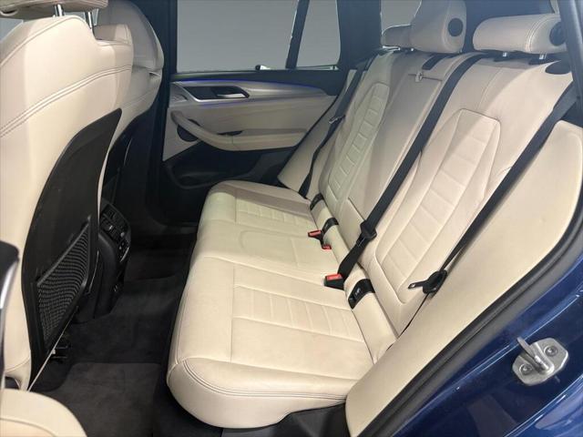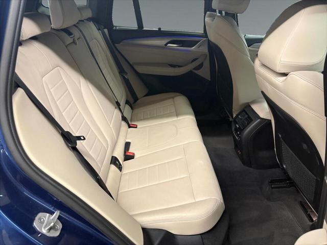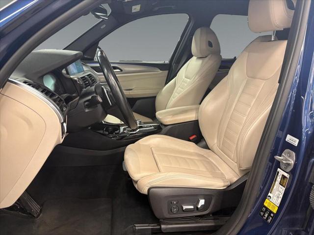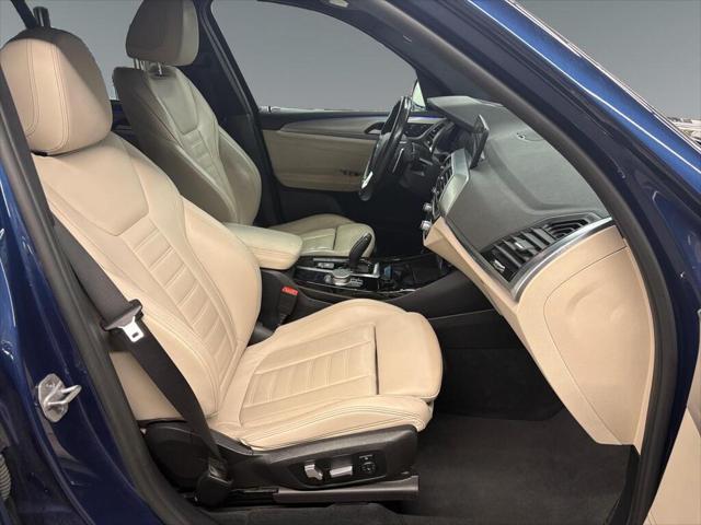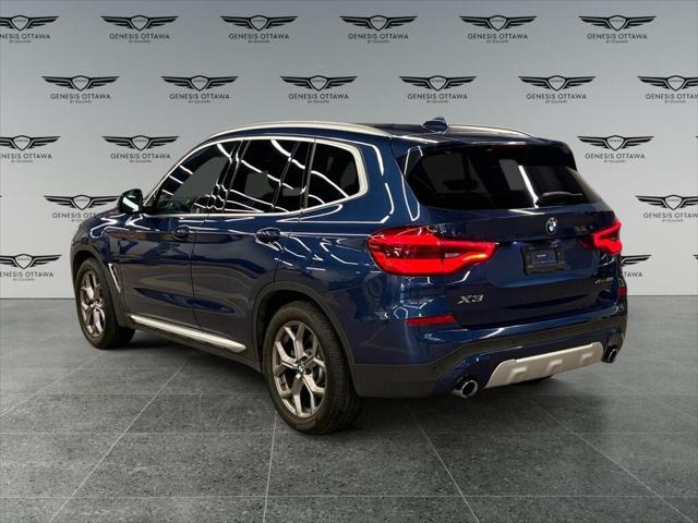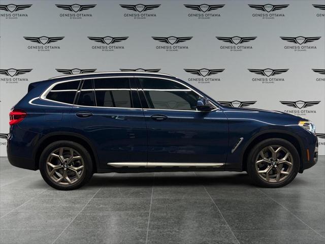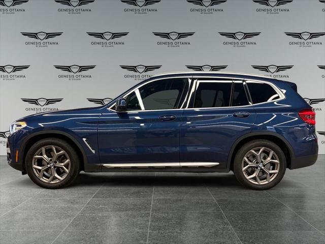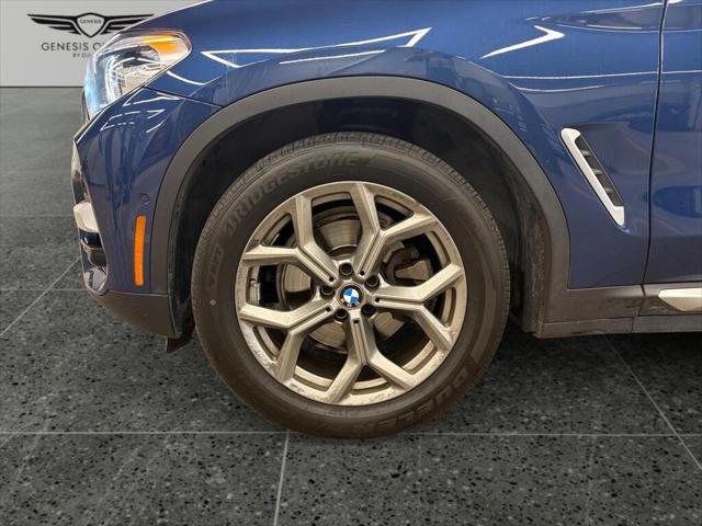 Presenting the 2021 BMW X3 xDrive30i Sports Activity Vehicle in a striking blue finish enhanced with all-wheel drive for superb handling and versatility. This SUV is ready to conquer any terrain and provide a luxurious driving experience. The exterior boasts elegant lines and robust alloy wheels while the interior welcomes you with sophisticated black leather seats and leatherette door trim. Experience comfort in any climate with features like heated seats a heated steering wheel and dual-zone air conditioning. Stay connected and entertained on the road with advanced technology including a user-friendly navigation system Bluetooth connectivity smart device integration and a Wi-Fi hotspot. Safety is paramount with driver assistance features such as lane assist brake assist a backup camera parking sensors and more to ensure peace of mind. If you're a driver seeking a blend of luxury technology and dynamic performance this BMW X3 is a perfect match. Contact us today to explore this stylish feature-rich SUV and elevate your driving experience.